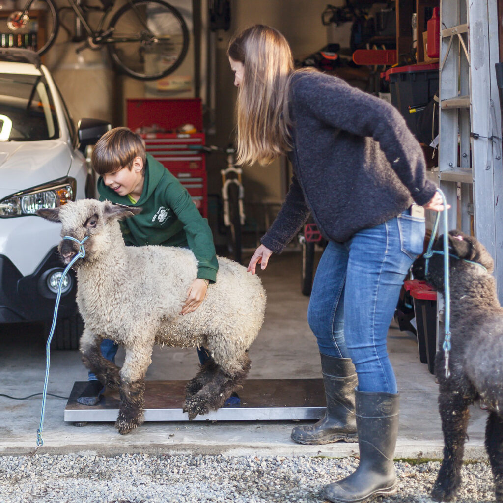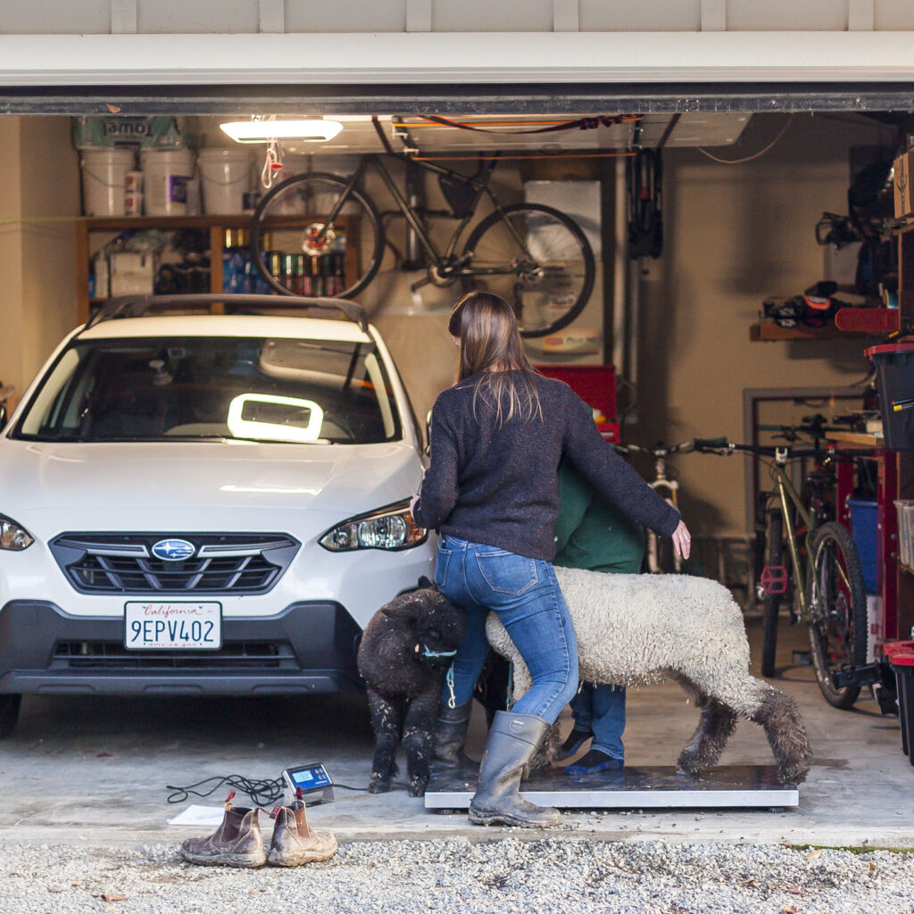 Looks challenging to weigh in the lambs.