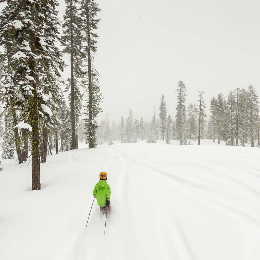 After skiing in sweaters and mountain biking gloves for a week over spring break the weather turned cold again this last weekend and March delivered yet another batch of powder on the Sierras. Max was off school on Friday for easter, so he and I jetted up to the mountains for a boys day of some exceptional powder. Doesn’t get much better than boot-deep fluff on an empty mountain.