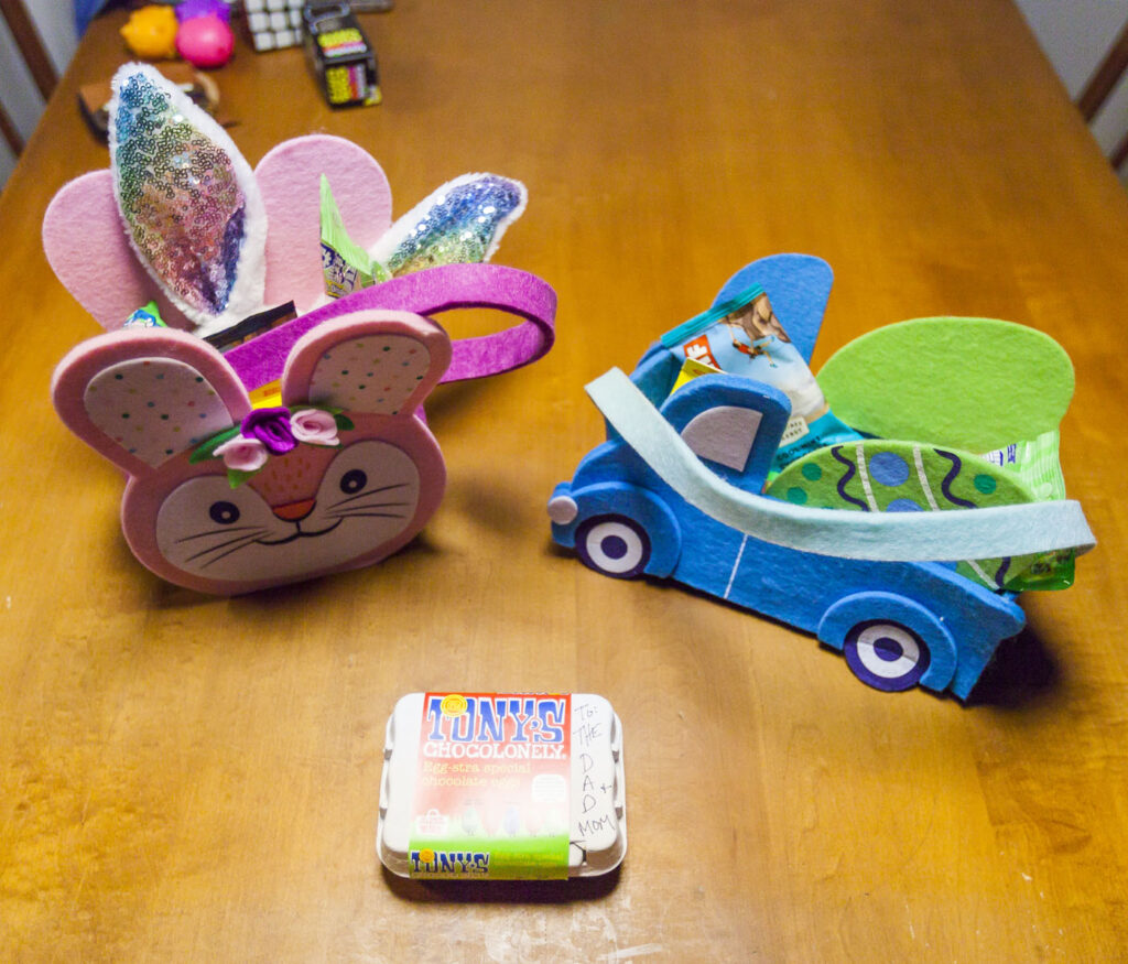 Easter Bunny was indeed able to find us up in the mountains on Sunday. Such good locating devices that bunny has!