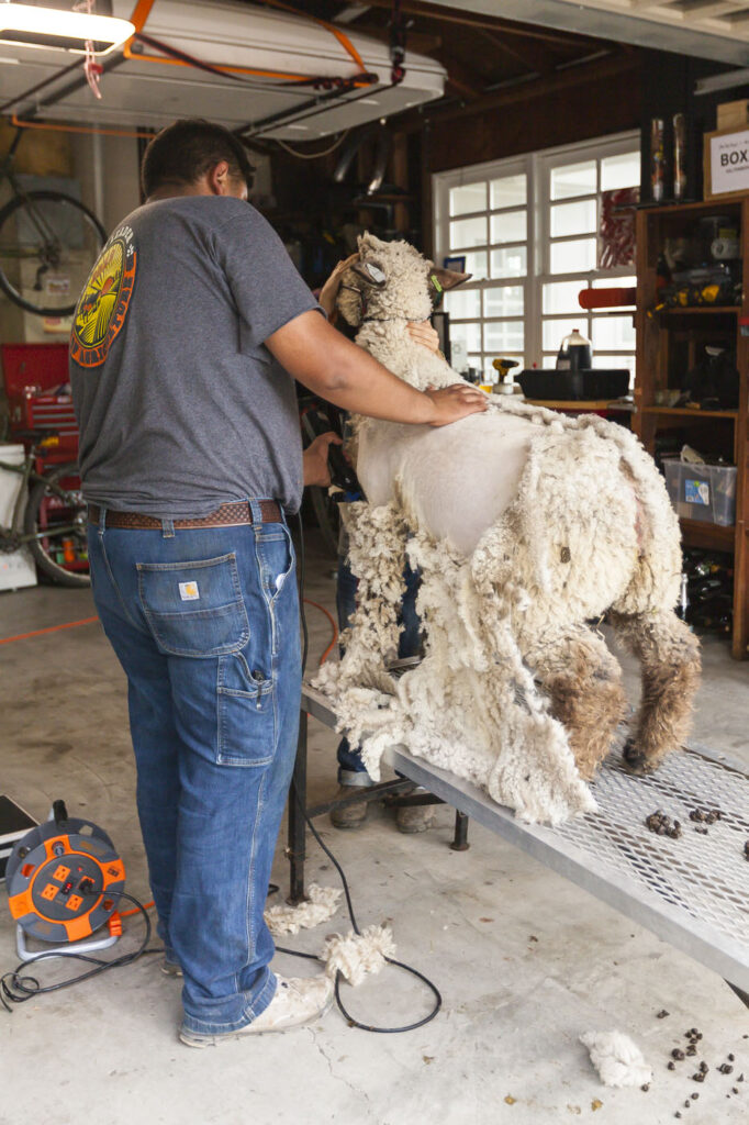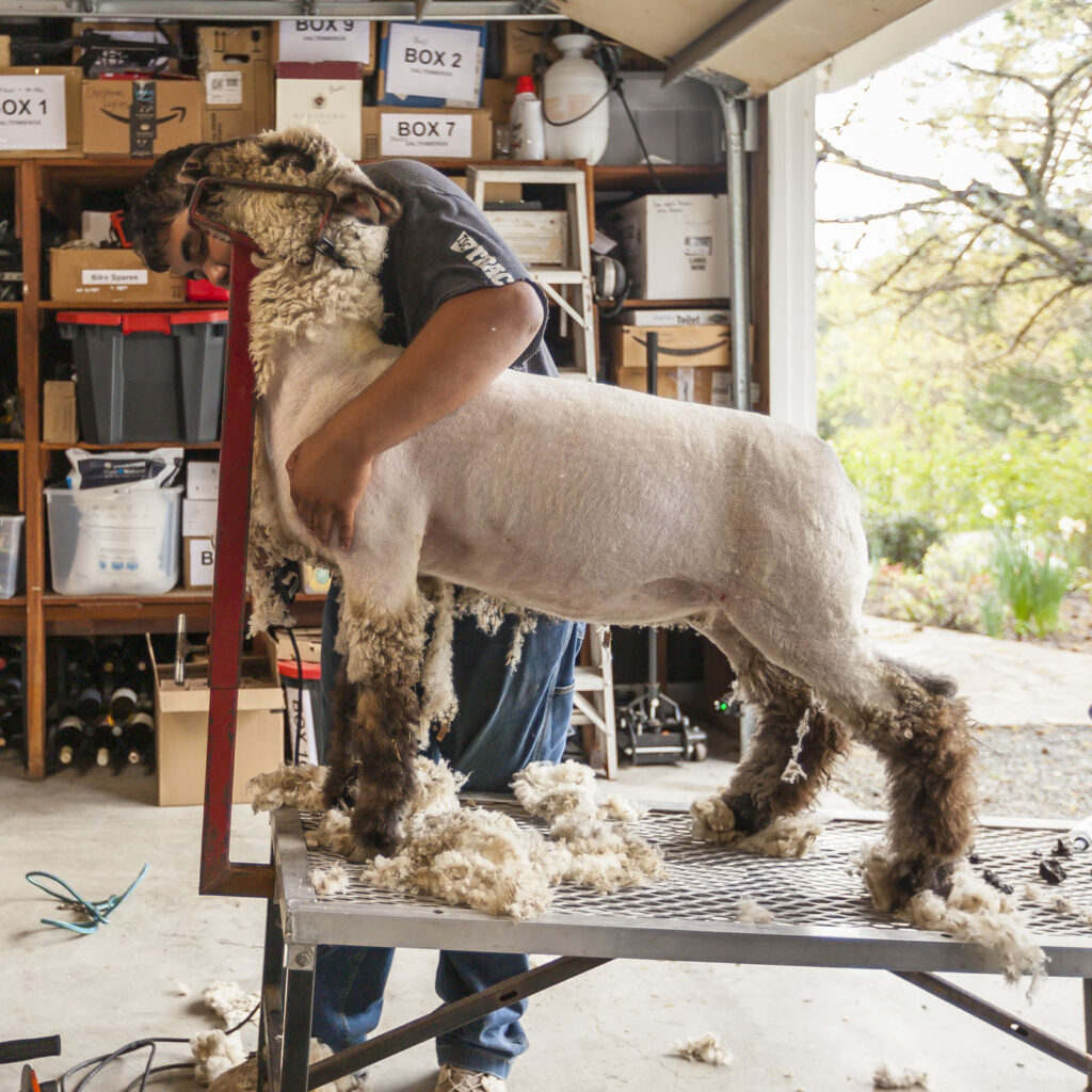 The wool (sadly) gets turfed, there just isn’t a market for it. Max has kept a couple of handfuls from each sheep, but the rest of out is long gone. Max can knit, but these are meat sheep all the way so it’s just getting them up to weight that he’s focused on right now…