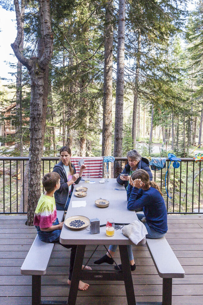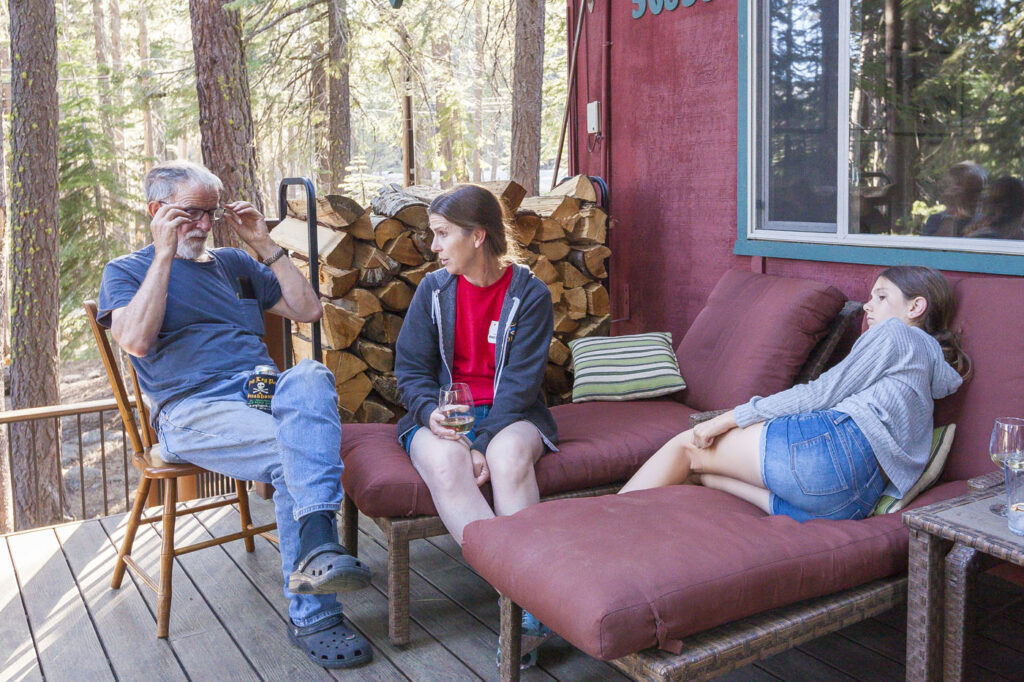 How long will Jeannie be in California? She looks GREAT. Looks like GREAT weather at the cabin. Lake looks wonderful, am sure it was cold? Appears Lisa and the kids to a swim, burr. How was the fishing in the lake? People took a time out for R&R on the deck. Chicken ? looks awesome.