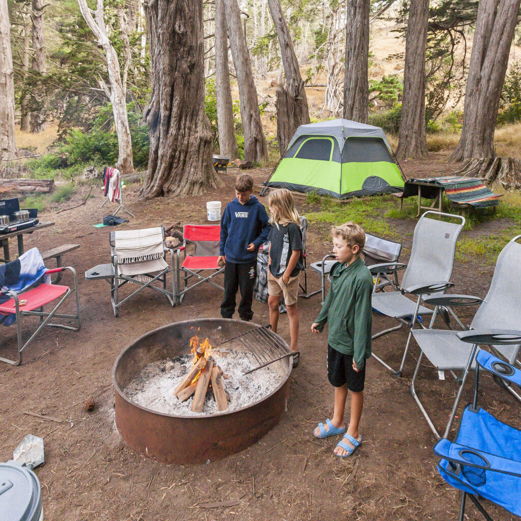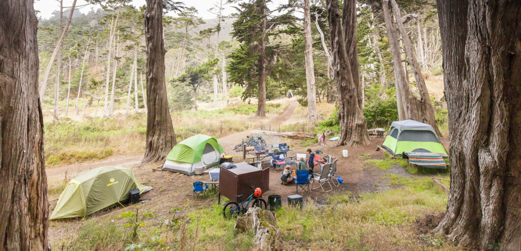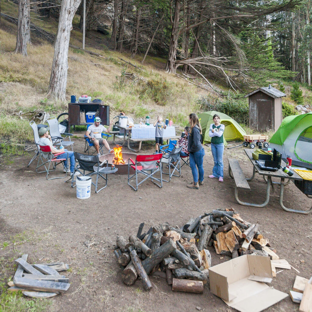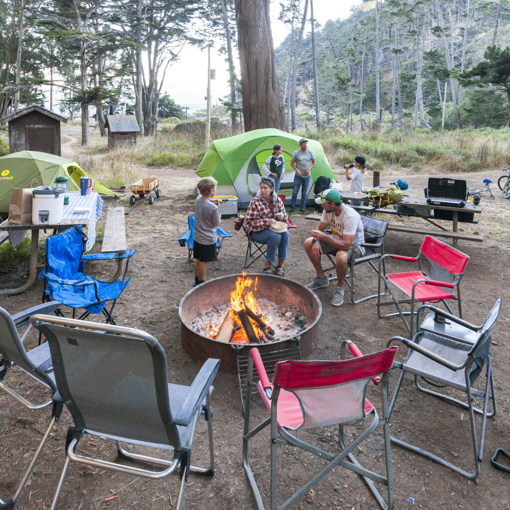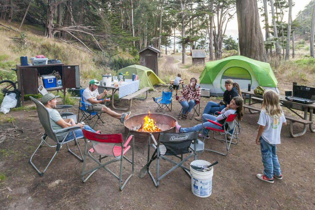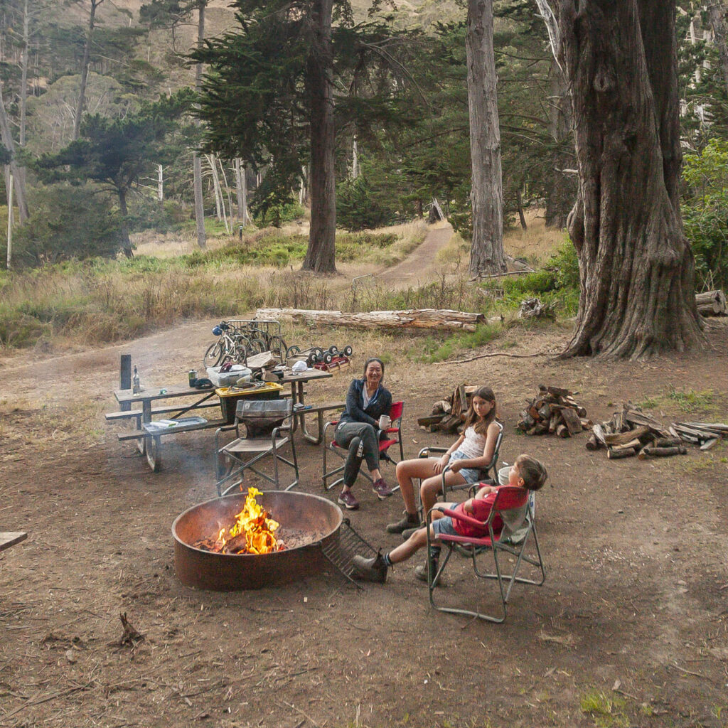 The other two families and Lisa were one day behind us, so the kids and I enjoyed our first night in the campground solo with a quick visit from Suzanne, who drove over for a few glasses of wine by the fire. We spent an action-packed day number one surfing at Rodeo Beach, followed by a tour of Nike Missile Site SF-88. SF-88 was super interesting, the free docent-led tour of the country’s most well preserved Nike site was a journey through cold war history culminating in us getting to witness one of the decommissioned missiles get elevated into firing position from its underground bunker. Amazing to think the servicemen manning the missiles would have been required to stay at the missile sites for years at a time during the Cold War. We finished up the afternoon with a bike ride over the Golden Gate into Chinatown, stopping at the kids’ favorite boba tea joint and finally an obligatory meal of dim sum and salt and pepper chicken wings at Capital. Man, their chicken wings are just so good!