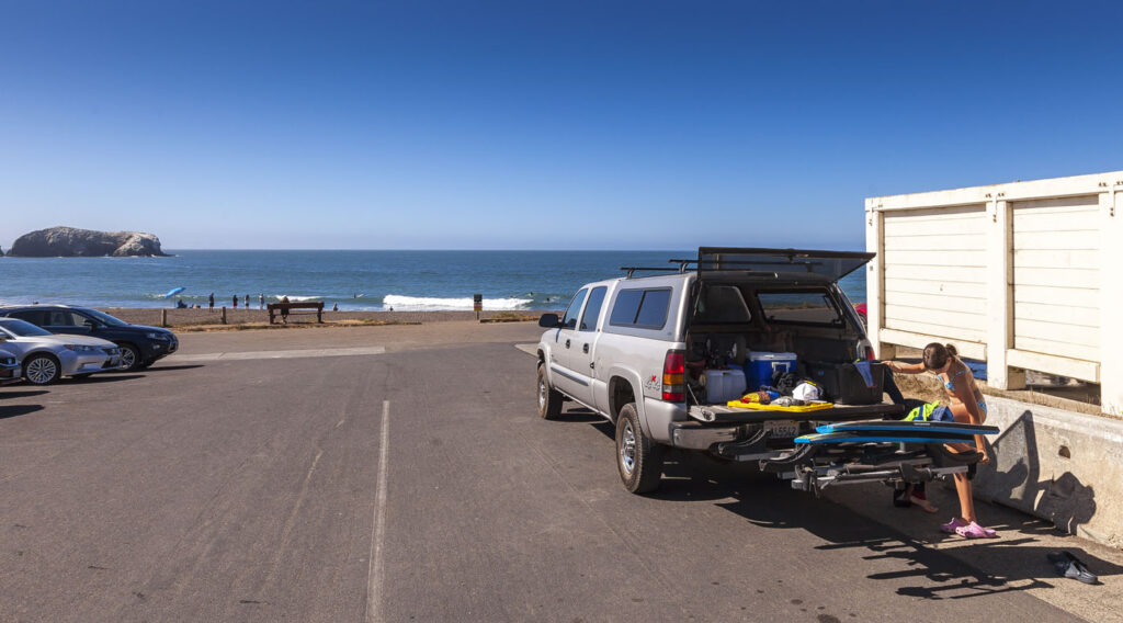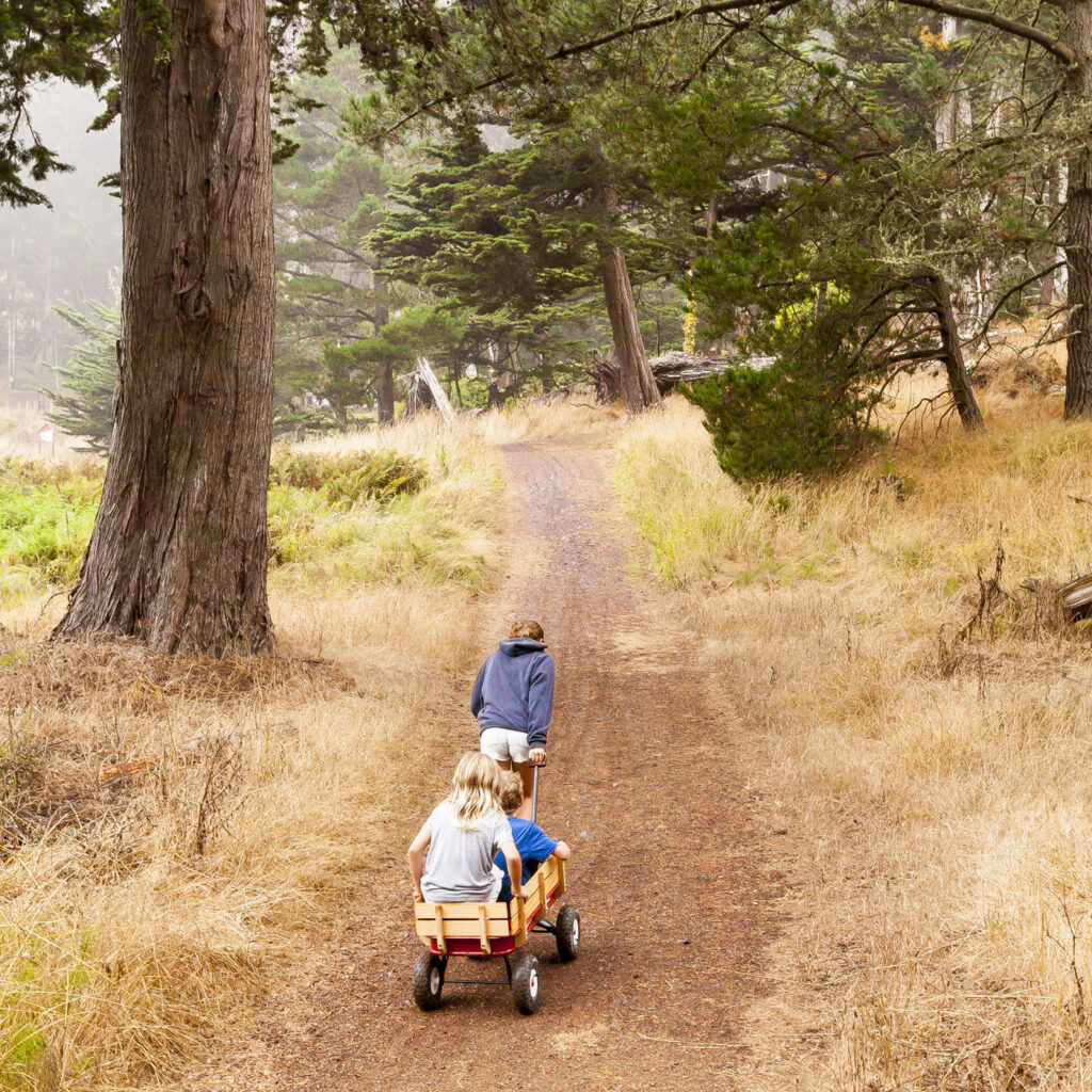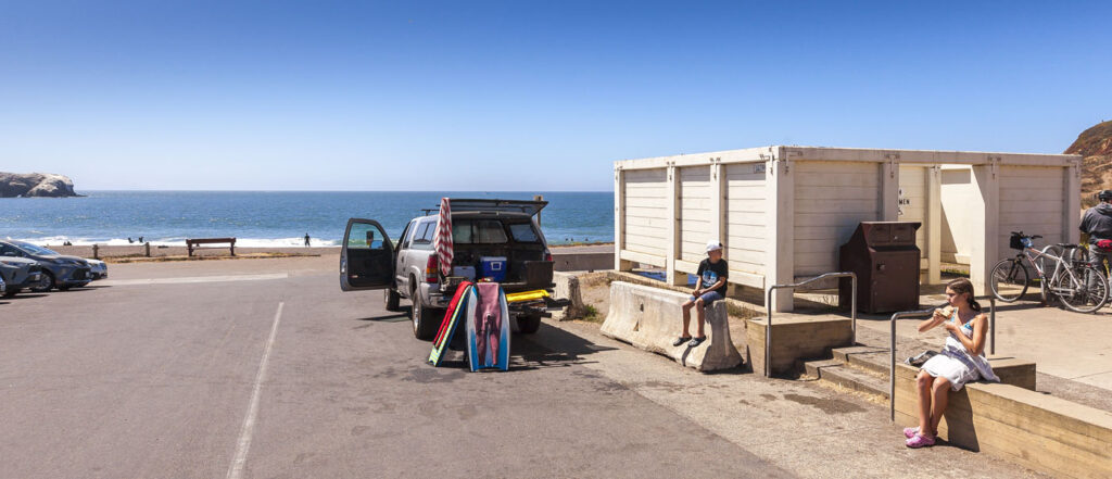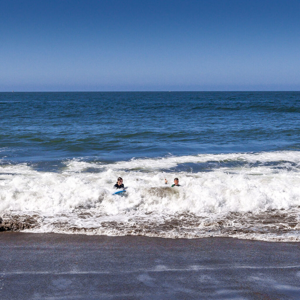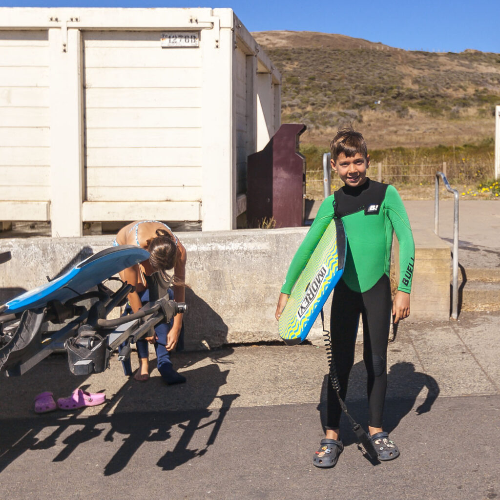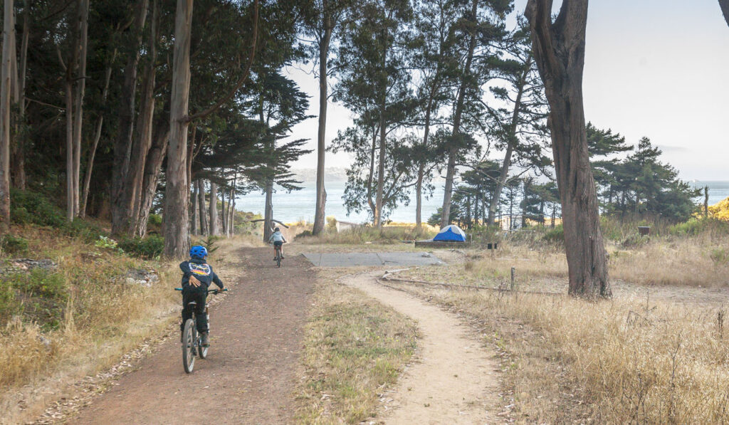 The other two families and Lisa were one day behind us, so the kids and I enjoyed our first night in the campground solo with a quick visit from Suzanne, who drove over for a few glasses of wine by the fire. We spent an action-packed day number one surfing at Rodeo Beach, followed by a tour of Nike Missile Site SF-88. SF-88 was super interesting, the free docent-led tour of the country’s most well preserved Nike site was a journey through cold war history culminating in us getting to witness one of the decommissioned missiles get elevated into firing position from its underground bunker. Amazing to think the servicemen manning the missiles would have been required to stay at the missile sites for years at a time during the Cold War. We finished up the afternoon with a bike ride over the Golden Gate into Chinatown, stopping at the kids’ favorite boba tea joint and finally an obligatory meal of dim sum and salt and pepper chicken wings at Capital. Man, their chicken wings are just so good!