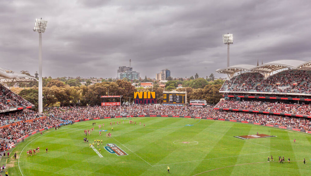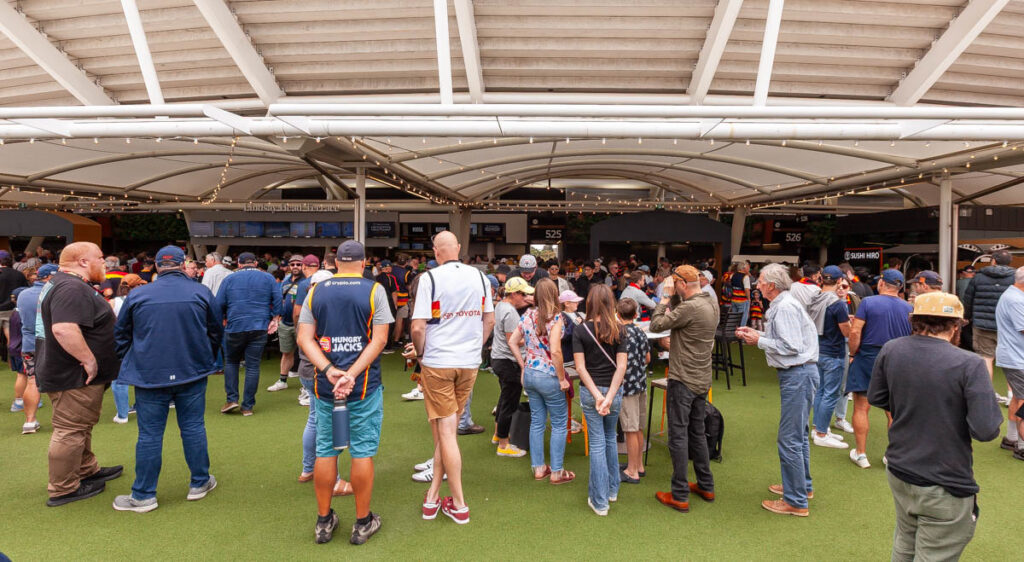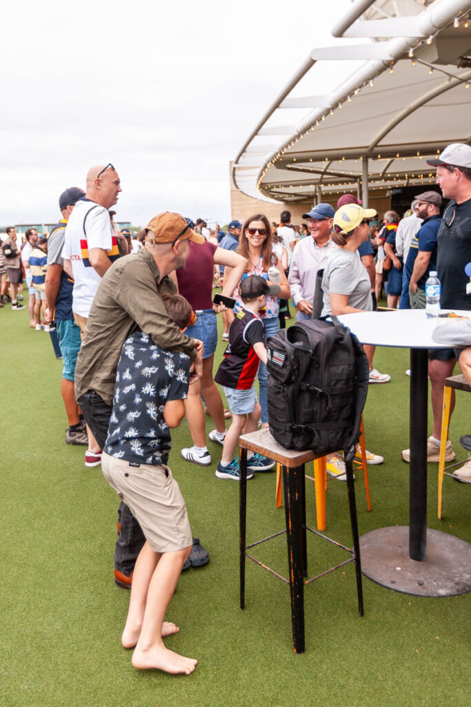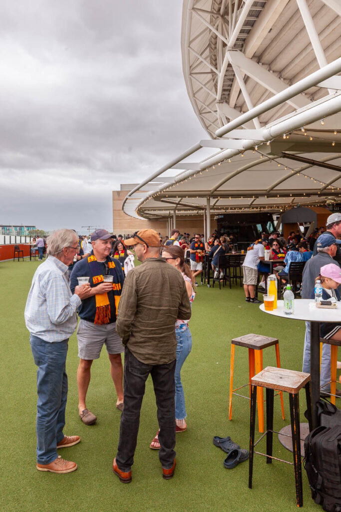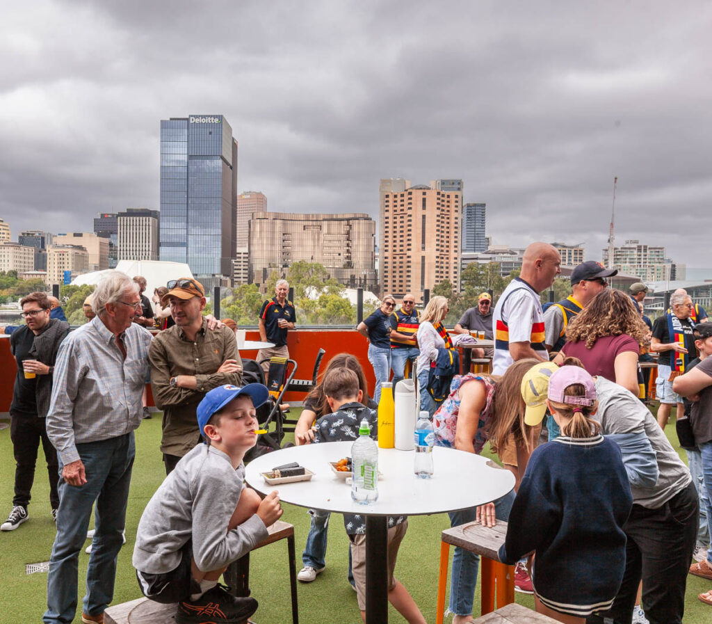 The weekend when we were in Adelaide was jam packed with events associated with the centenary celebration: Friday night drinks at the Queen’s Head Hotel adjacent to college, the gala dinner at the Convention Center on Saturday, and an impressive brunch at St Mark’s on the Sunday. It was great to see so many familiar faces – a number of which Lisa and I hadn’t seen for more than 15 years – at both the Friday welcome drinks and main event on the Saturday. The organizers of the weekend put together an exceptional gathering with so much thought put into every detail, was really quite a memorable way to reconnect with old friends and reminisce about all the great times we shared at college. I also really enjoyed walking with Lilia around St Mark’s during the Sunday brunch, being able to show her the rooms where I lived during each year of my university studies and explain to the kids all the rules associated with living at college (Max was very intrigued about how one ends up being “ponded!”). Was a lot of fun to have my cousin Sophie in town from Melbourne as well; she began her college career some six years after I left St Mark’s in 2000 and I think enjoyed her time there just as much as I did. We wrapped up the weekend with a footy game at the Adelaide Oval: it wasn’t much of a game as the Crows delivered an absolute drubbing to St Kilda, but was fantastic weather and an excellent way to wrap up the weekend with the Littles, Pops John and Greg Halls. By the end of three days of celebrating my liver and stomach were pleading with me for a break!