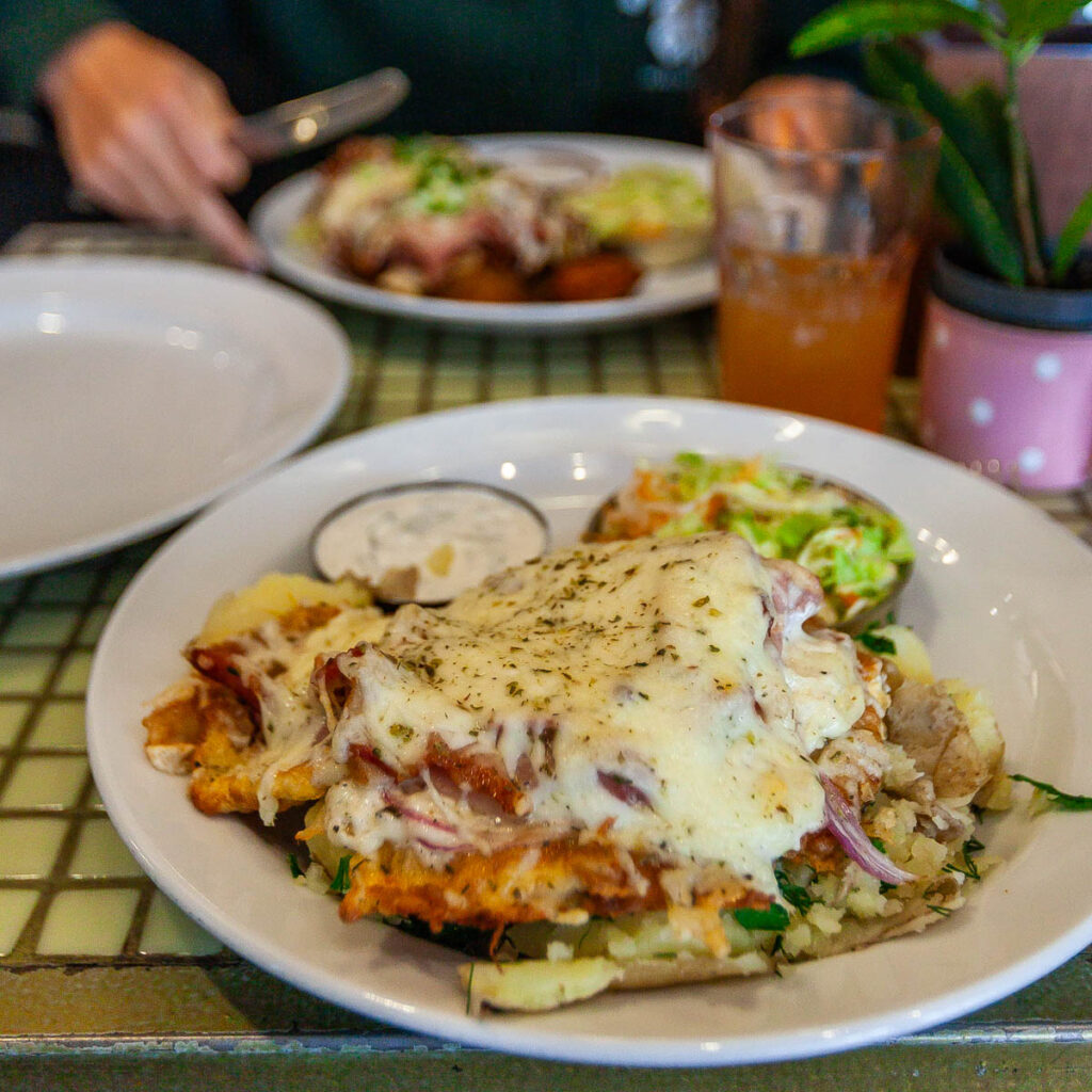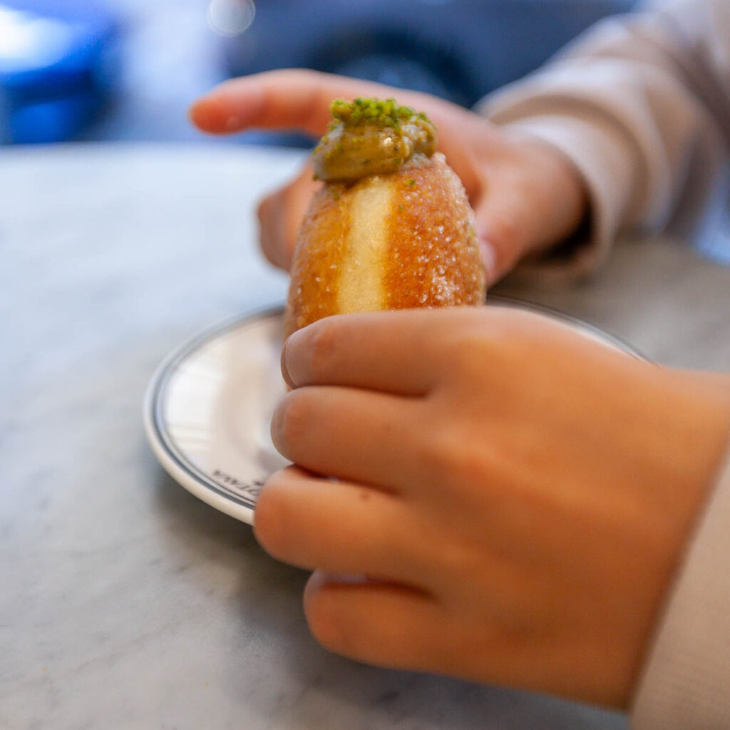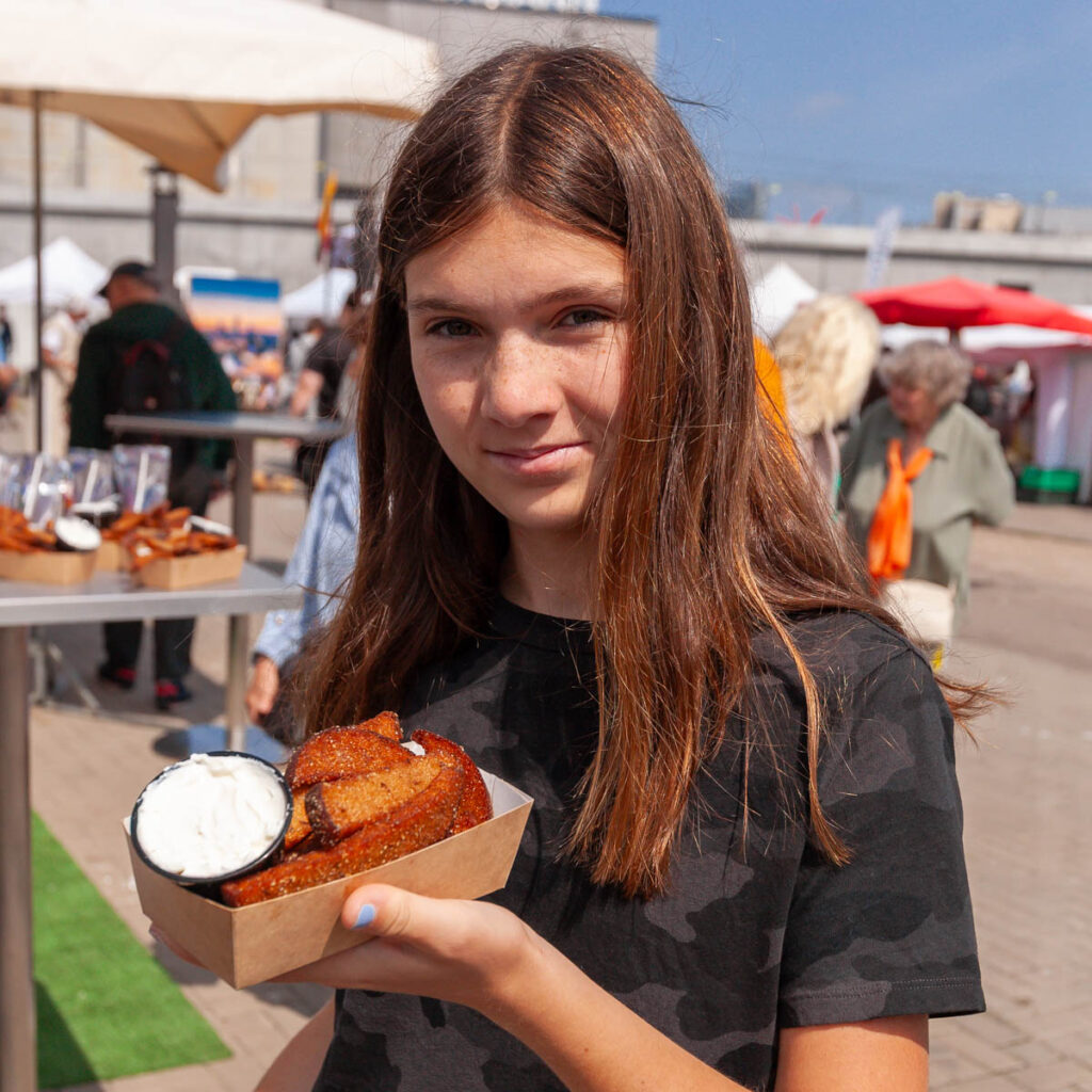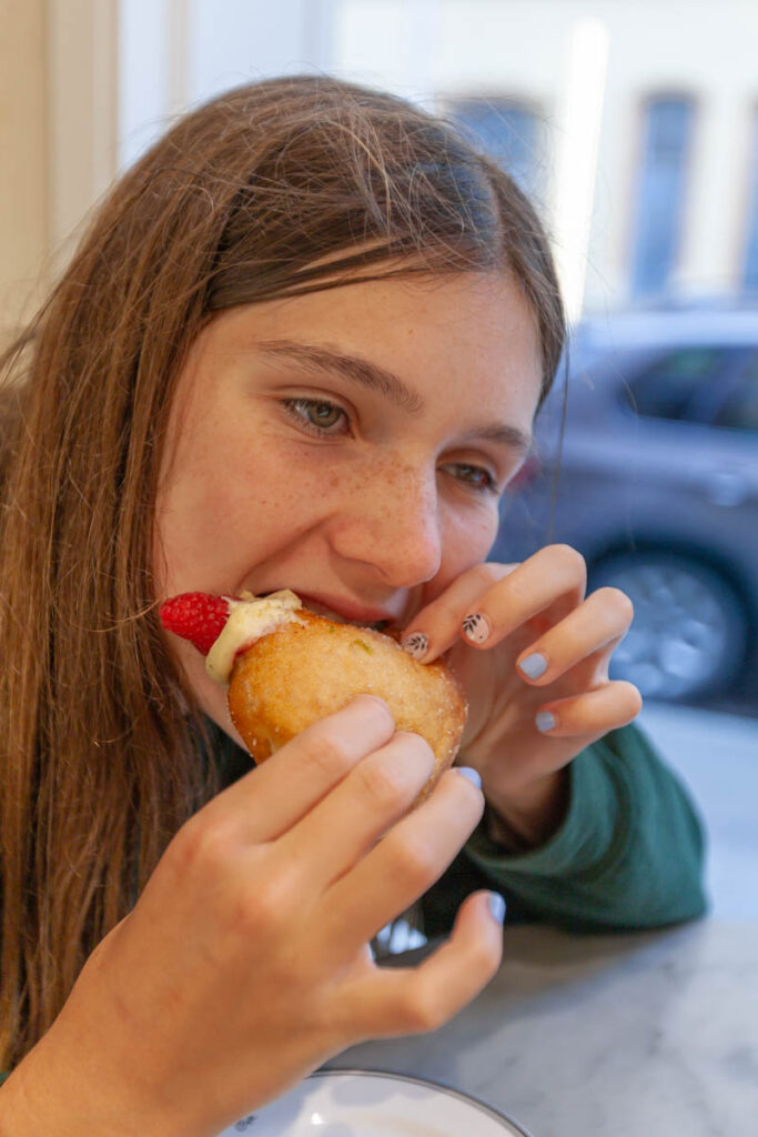 I don’t know what it is – maybe my Latvian roots – but I do love the prevalence of pickled food and pork in this part of the world. Pork and potatoes: Baltic staples. We explored a handful of local eateries during our time in town, I think my favorite was a hole-in-the-wall restaurant called Lokals Karbonades specializing in plate-sized chicken and pork breaded cutlets served with all manner of customizable toppings. The kids shared one covered in cheese, bacon and BBQ sauce. Mine was slathered in a bechamel-y sauce, French ham, pickled onions and melted cheese. They were divine but I was in pain after clearing my plate, so much food! The schnitzels and fried potato cakes with bacon at Gauja were a notable standout as well (another great find thanks to Reddit). And the pastries in Kukotava below our apartment were delectable with such incredible presentation: I remember eating berliner donuts as a kid, but the ones from Kukotava were a cut above. One local eat we’ll all remember was the Baltic version of garlic bread: in Latvia it’s made of rye bread – another staple at my grandparents’ house when I was growing up – which was deep fried, coated in fresh garlic and served with a dipping sauce that was a bit of a cross between sour cream and marscapone. It was incredible, there’s a pic below of Lilia holding a tray of it at the Riga central market, we saw it a few times on menus as a snack.