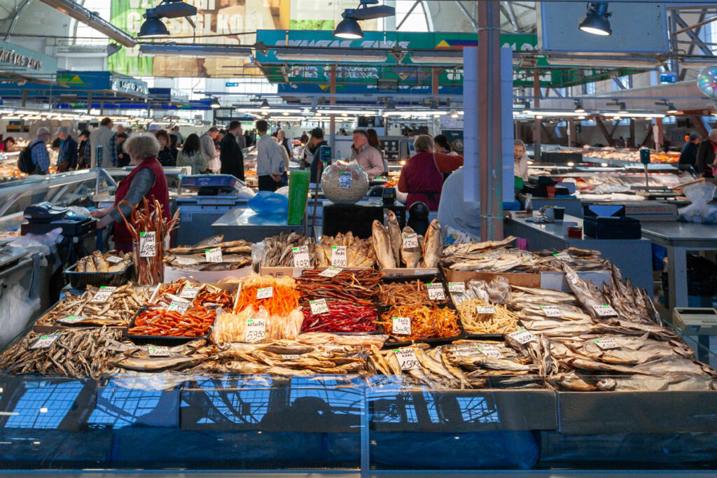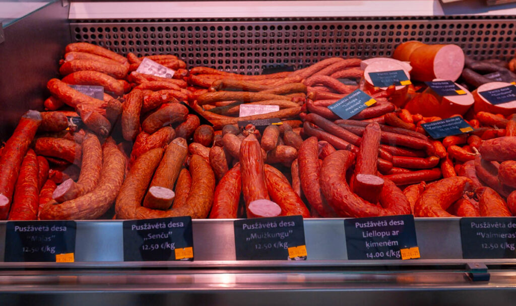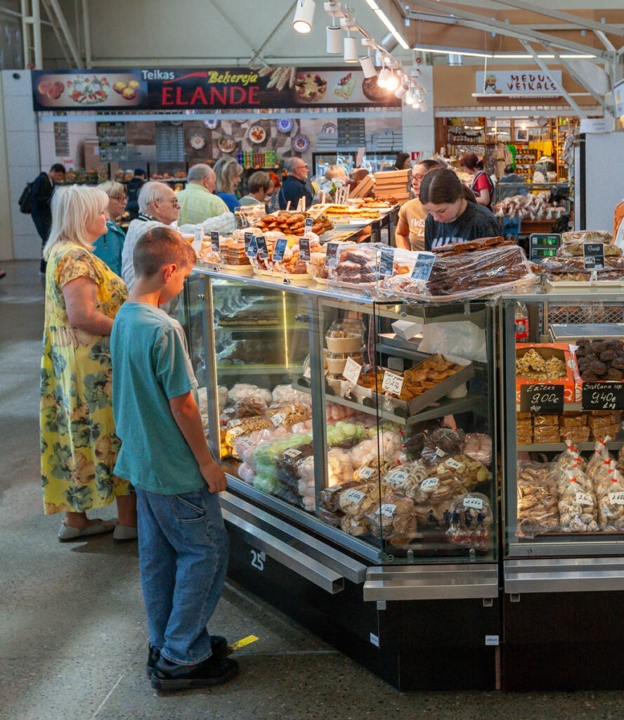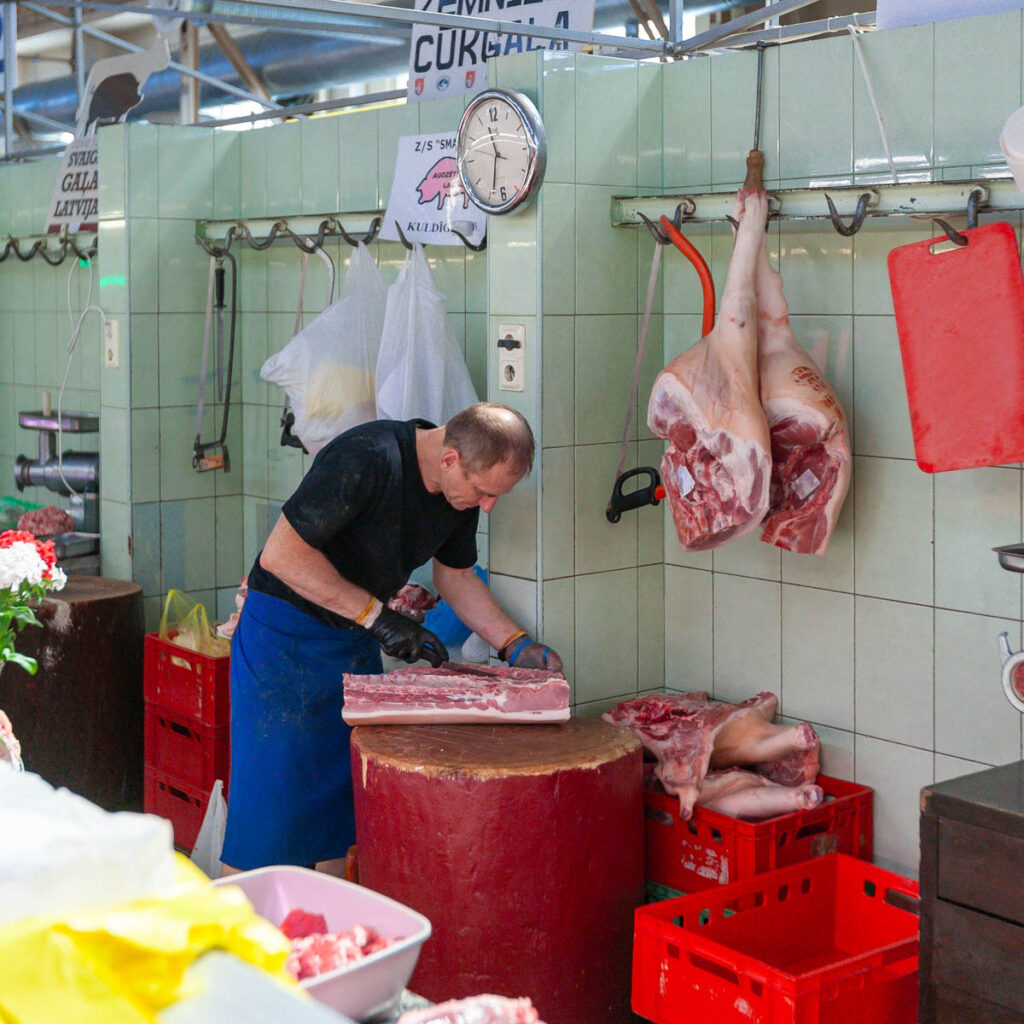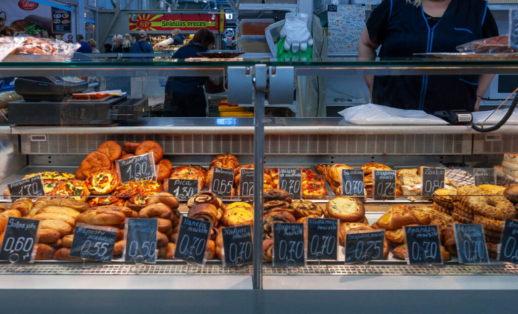 We nibbled on a few offerings from the cheese and bread hall, all voting a soft, sweet, buttery bread twist covered in poppy seeds as our favorite pastry of the day. We also managed to hunt down a baker selling piragi that were still warm from the oven. Bacon-and-onion-filled piragi were a staple at all Valtenbergs family gatherings when I was a kid, although my doting grandmother used to make special ones just for me – the only grandchild – without onions because I was a picky little shit. I make them now and then for Lilia and Max and they are always devoured in short order. Before we arrived in Latvia both kids mentioned the need to find some during our visit so I’m glad we could check that off the list. The piragi we found at Riga’s central market didn’t disappoint, they made me realize I need to work on my dough when we get home, I need to add more butter.