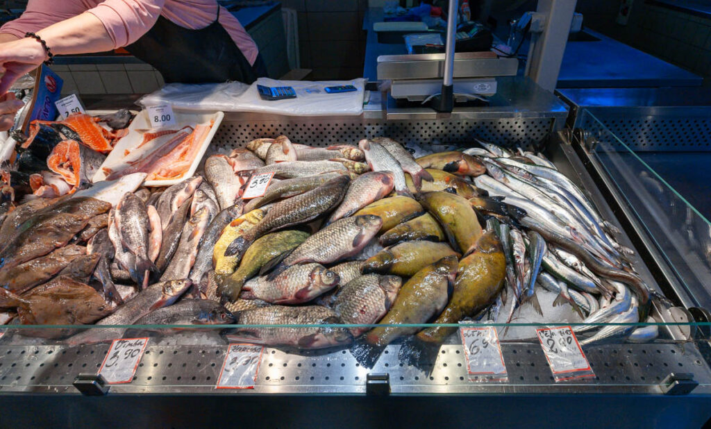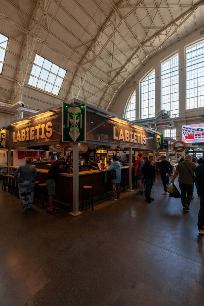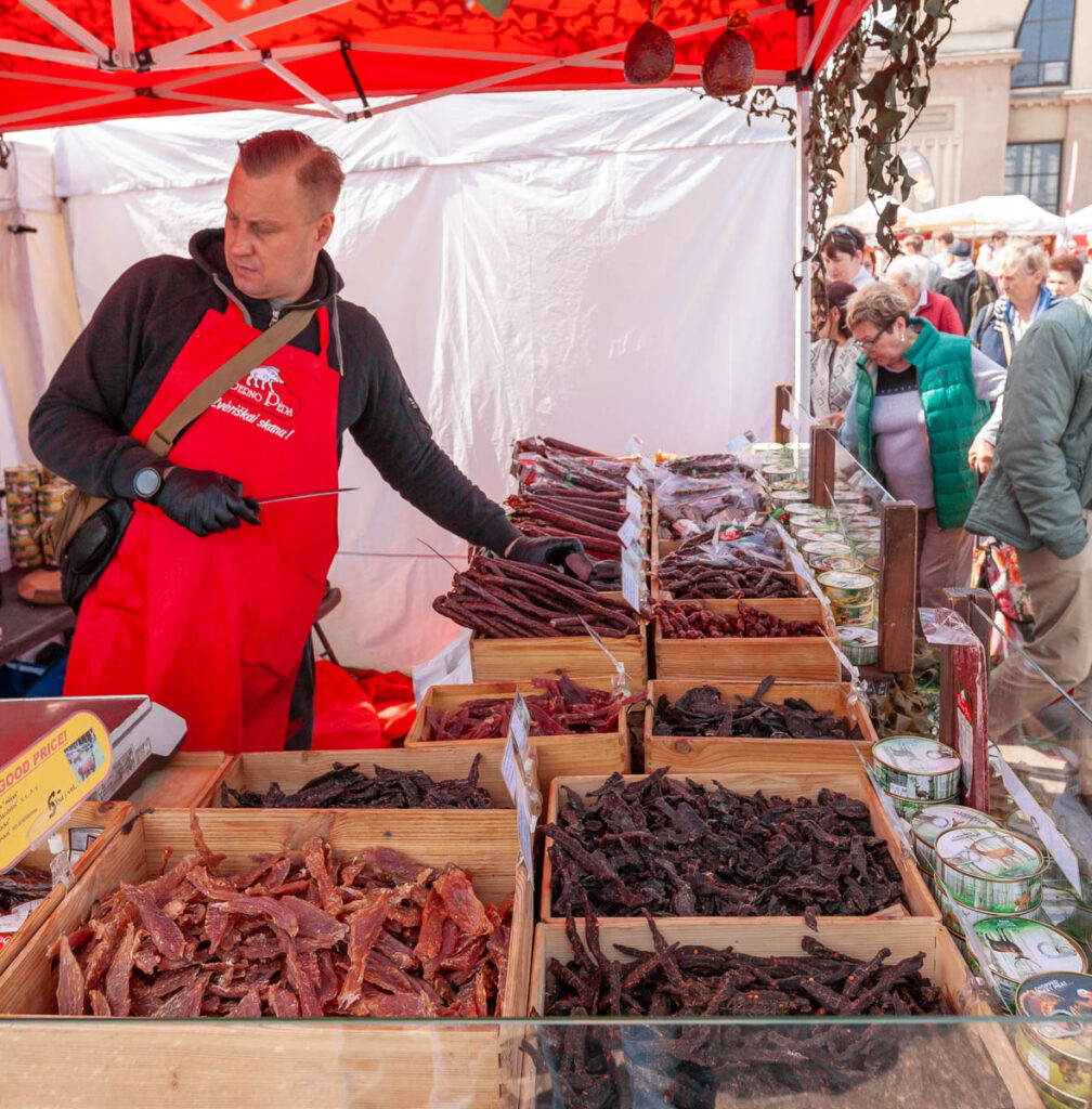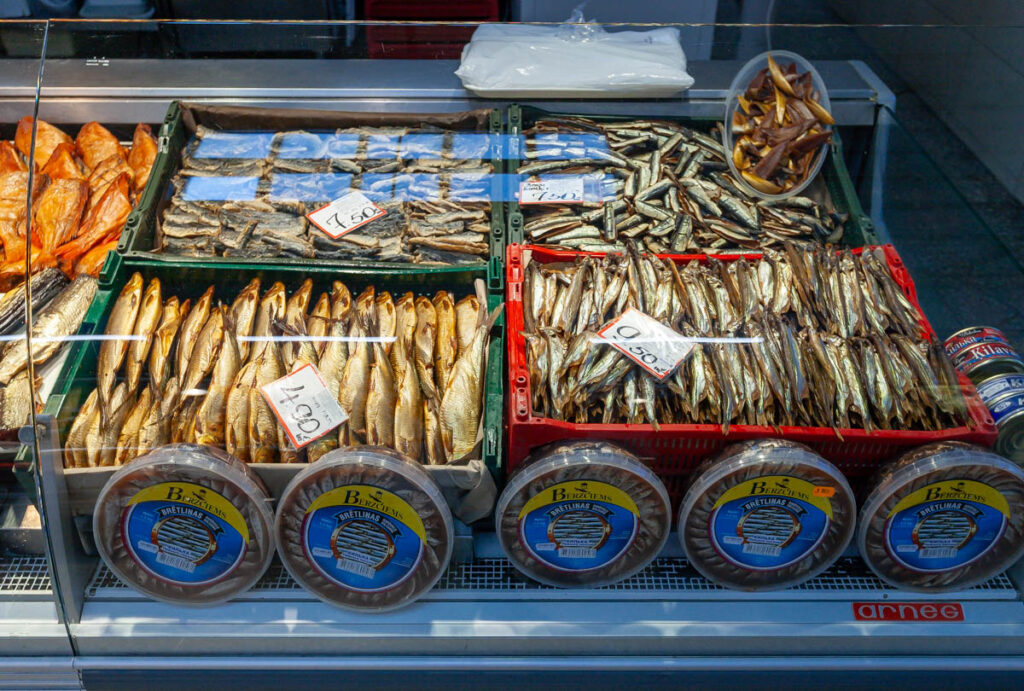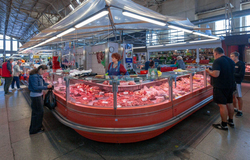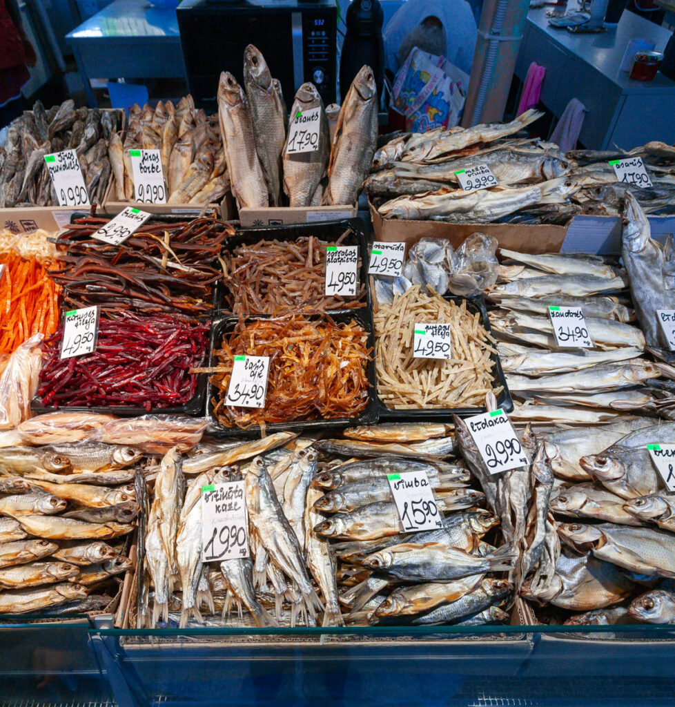 We nibbled on a few offerings from the cheese and bread hall, all voting a soft, sweet, buttery bread twist covered in poppy seeds as our favorite pastry of the day. We also managed to hunt down a baker selling piragi that were still warm from the oven. Bacon-and-onion-filled piragi were a staple at all Valtenbergs family gatherings when I was a kid, although my doting grandmother used to make special ones just for me – the only grandchild – without onions because I was a picky little shit. I make them now and then for Lilia and Max and they are always devoured in short order. Before we arrived in Latvia both kids mentioned the need to find some during our visit so I’m glad we could check that off the list. The piragi we found at Riga’s central market didn’t disappoint, they made me realize I need to work on my dough when we get home, I need to add more butter.