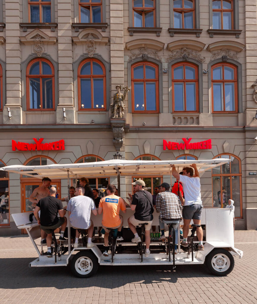 Old town Riga to the north of the Museum of the Occupation of Latvia was covered with an impeccably well maintained collection of art nouveau buildings, many of them with bars and cafes spilling out into the surrounding courtyards. As we strolled through it was the first sun we’d seen since leaving California so felt compelled to soak up some rays with a few cold drinks and a does of people watching. It was touristy beyond belief: guided walking tours filtered through as we sat there, as well as a handful of bachelor and bachelorette parties and even a pedal bar hosting a group of Brits who were so plowed they could hardly control the limbs that were supposed to be powering them forward. Max enjoyed seeing one of the shirtless pedaling Brits get whipped with a belt by the female pedal bar host! Well worth the time spent in old town, and the kids enjoyed a bit of solo time exploring the handful of European clothing stores dotted through the courtyards.