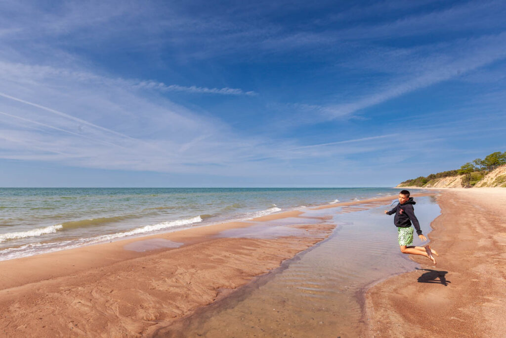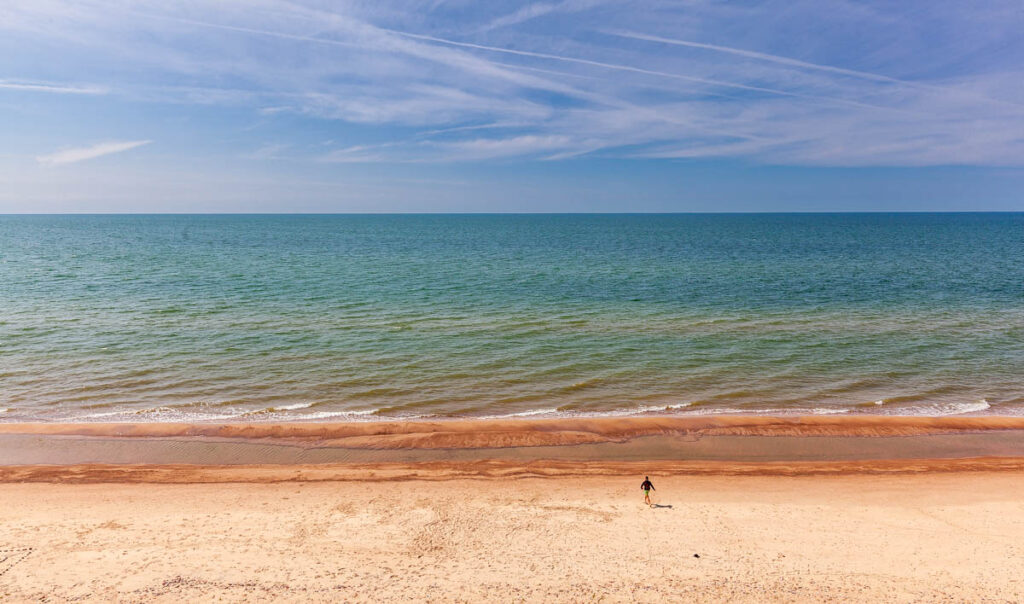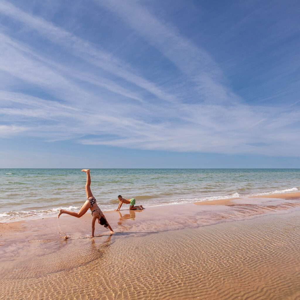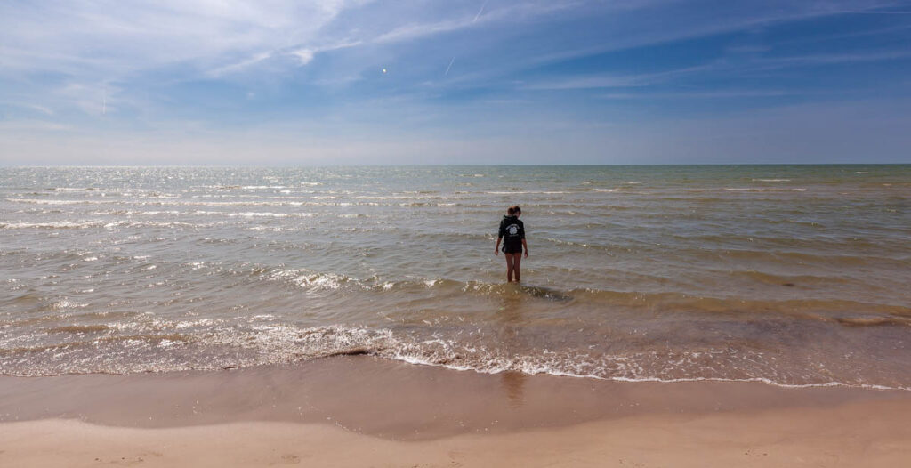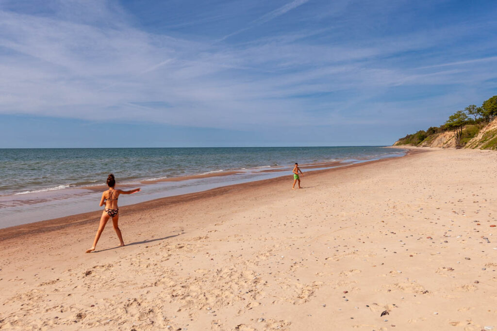 From Kuldiga we took the coast road back to Liepaja, skirting the sand cliffs from Jurkalne to Strante and eventually finding a spot in Ulmales where we could get down to the beach next to a private campground. While the temperature did drop quite a bit from Kuldiga inland – from around 78ยฐF/26ยฐC to 68ยฐF/20ยฐF on the coast – it was still warm enough for a bit of frolicking in the water and a few pings of the Aerobie. Such a picturesque coastline, and nice to have lucked on a spot to ourselves away from the windy sand of Liepaja to the south.