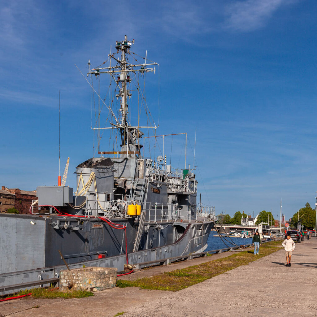 These days Liepaja is a coastal destination in the summer months, known for the white sand beach that stretches along the coast to the west of town. Even though it was quite sunny and warm in town during our stay, any Latvian will tell you, “Liepaja is where the wind starts.” It was no exception when we visited: the cool breeze whipping off the Baltic Sea necessitated long sleeves even under a cloudless sky. The kids enjoyed more exceptional Baltic outdoor facilities at a park near the beach, and we enjoyed a couple of strolls on the promenade alongside some of the huge ships moored in the harbor.