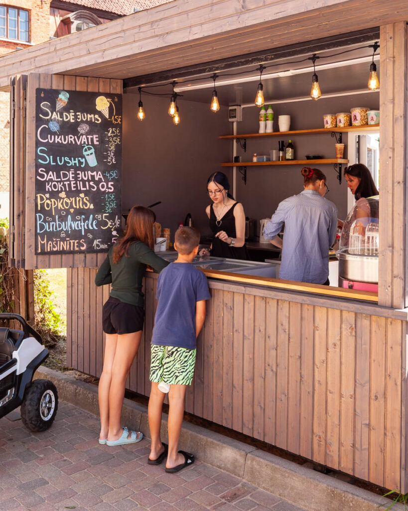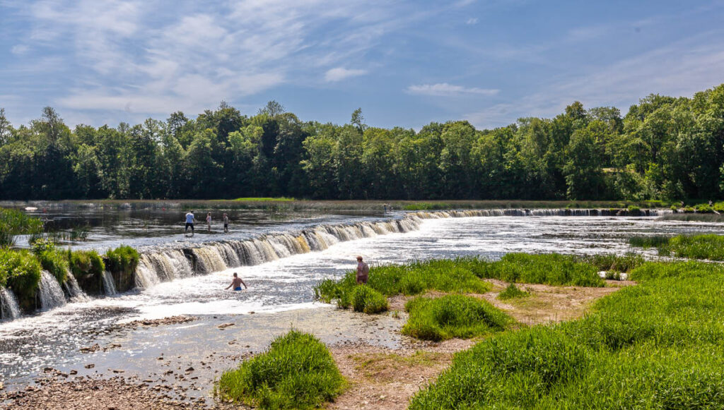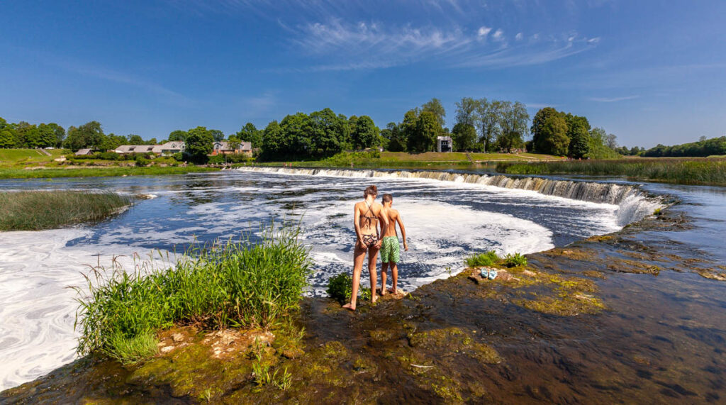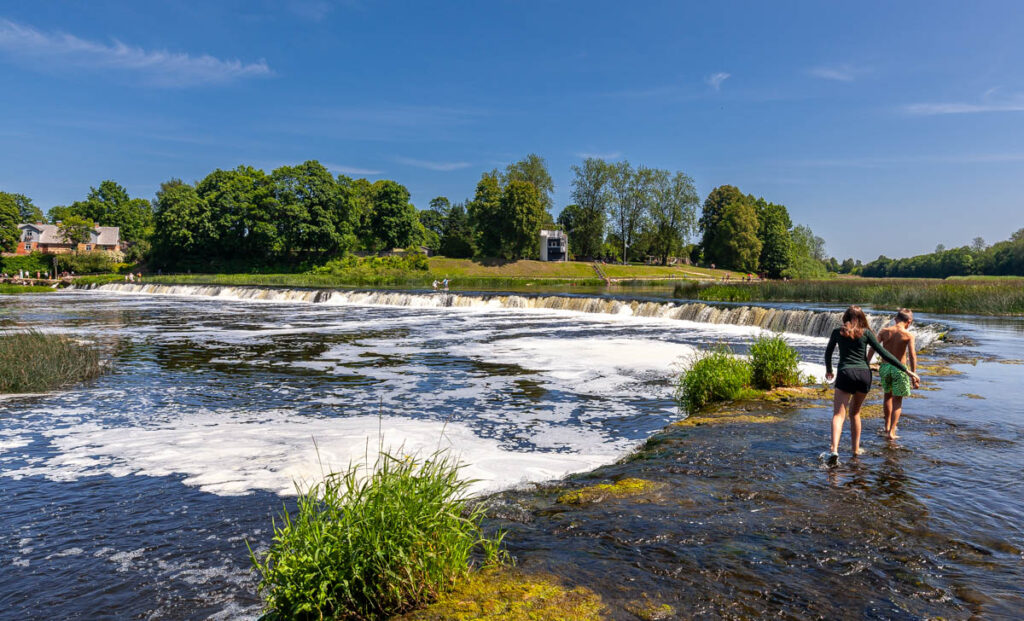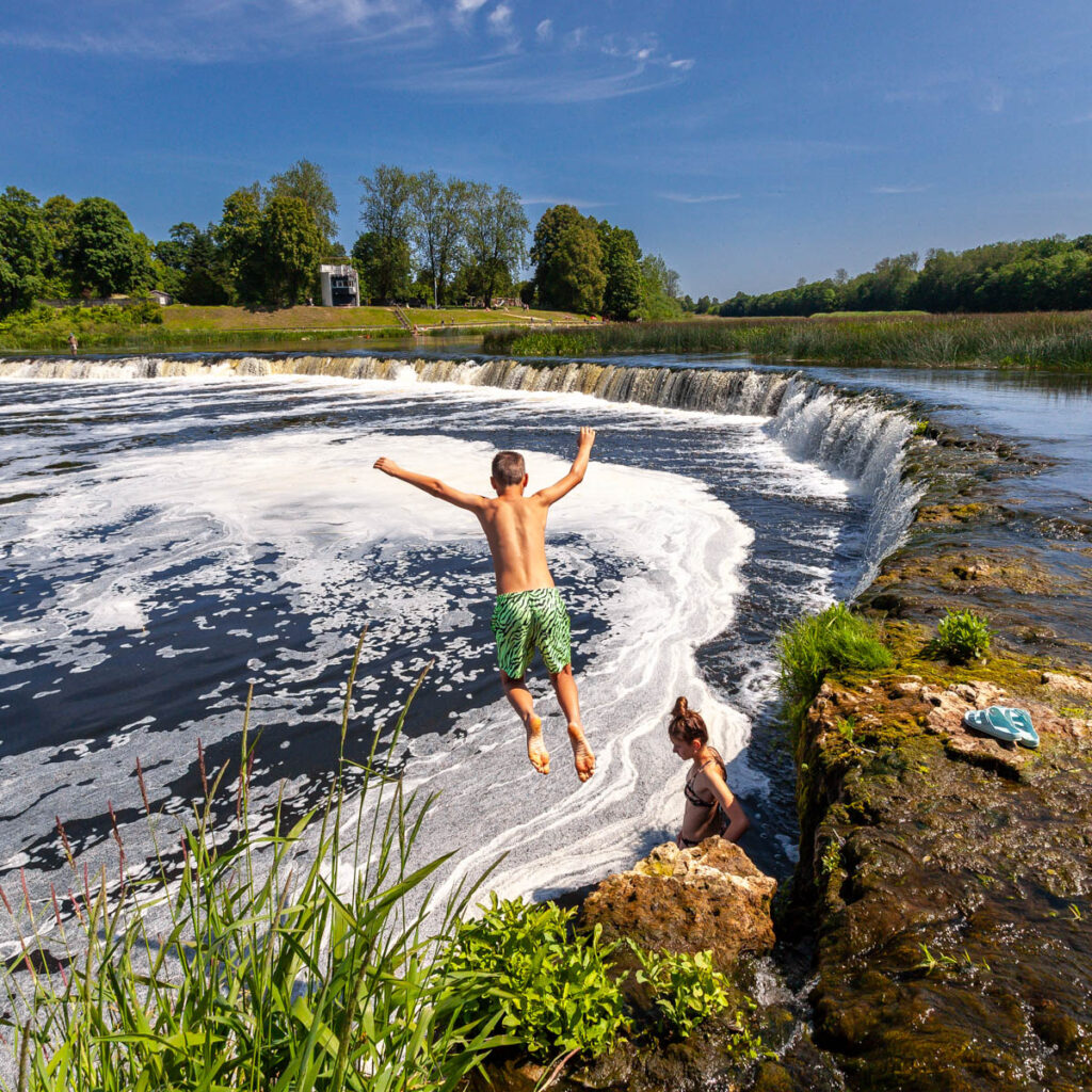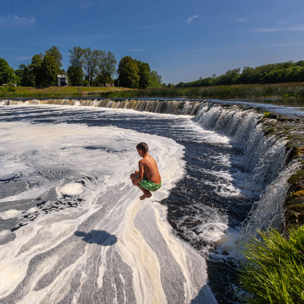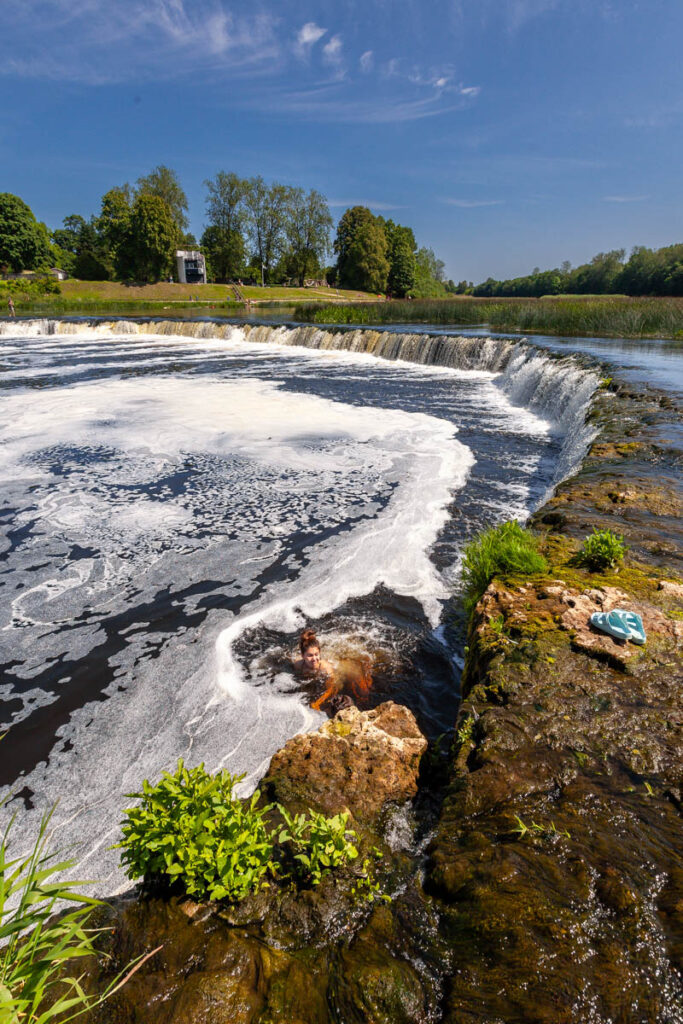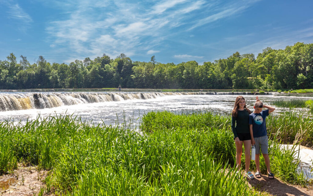 A day trip to the quaint rural village of Kuldiga was a nice drive through the incredibly green western part of the country: with 55% of Latvia’s landmass covered in forest and 32% devoted to cropping, there’s a hell of a lot of green during spring and summer. Endless fields of cereal crops stretched to the horizon in all directions as we drove inland, no fences in sight, just the occasional swath of native forest in between the fields. While also being quite a picturesque village, our main target in Kuldiga was Ventas Rumba, Europe’s widest waterfall. The falls stretch 110 meters (360 feet) across the span of the River Venta and were a fantastic spot for a dip in the warm weather. Max was boosting off the rocks in short order and we even managed to get Miss Lilia in for a quick dip. While the Latvian-styled kebabs we tried from Voyage Voyage weren’t on top of the kids’ list of favorite foods from their time in Latvia, I absolutely loved their fare: chicken or beef kebab meat with pretty standard kebab sauce, but complemented with a Baltic touch of pickled cucumber, pickled carrots, cabbage and – of course – a hint of dill. Yum!