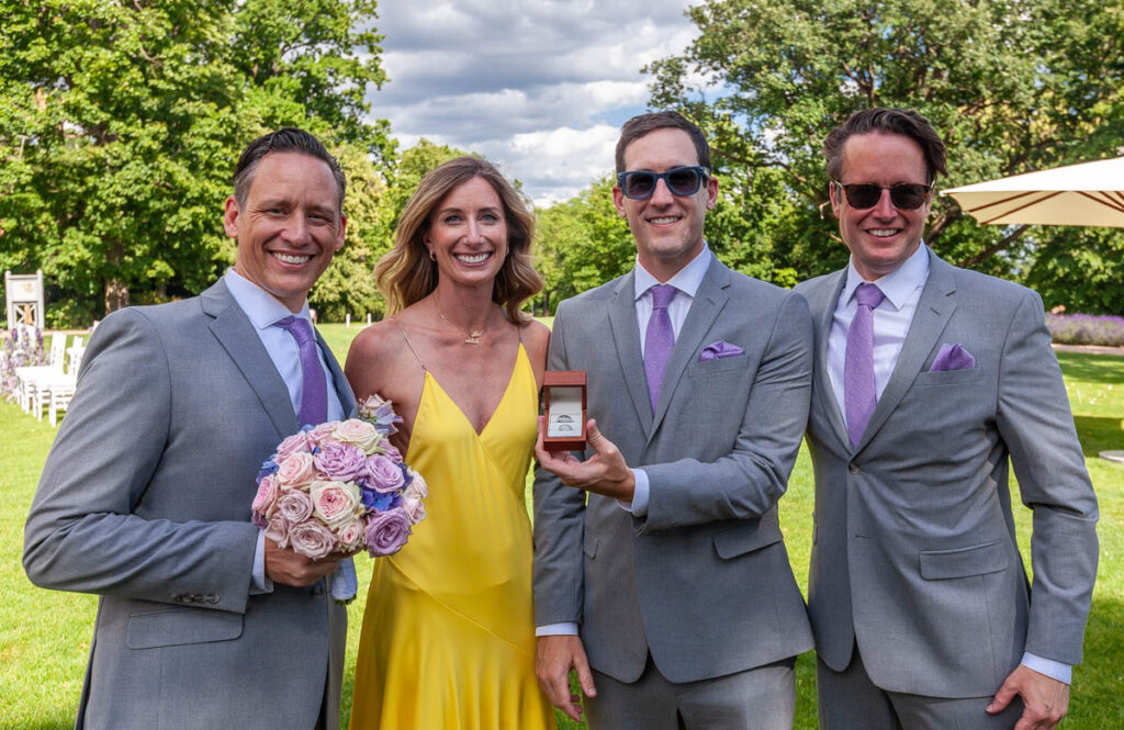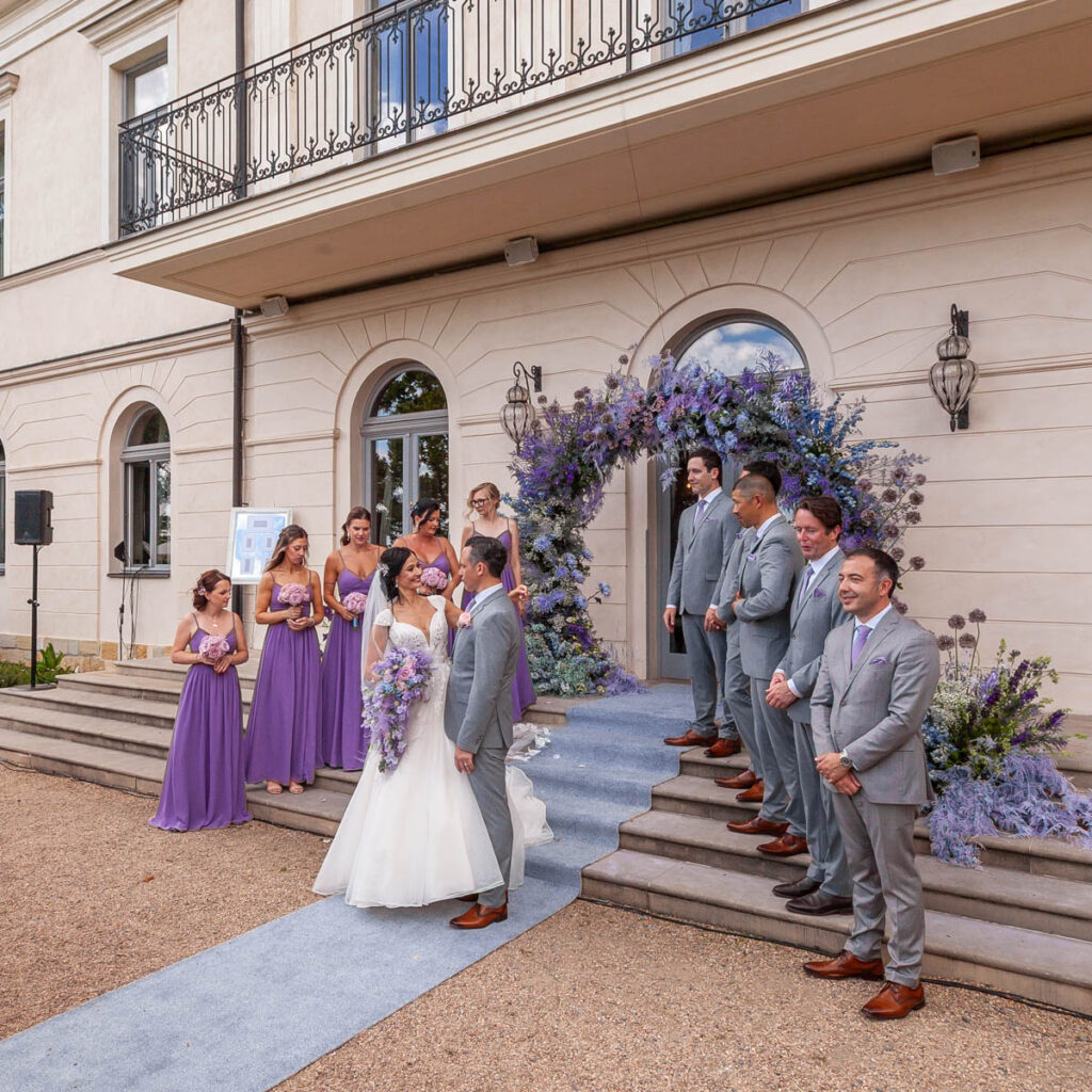 The wedding day was long but such a beautiful event, the flower arrangements littered across the chateau were very impressive. So fun to see everyone all dressed up, Wild Man fit the bill in his little suit and Lilia looked way too mature in her fancy dinner dress. Lots of good conversation, beautiful bridesmaids, a stunning bride and plenty of happy tears during the day as Oliver and Veronika tied the knot. It was all memorable, but Veronika’s midnight transformation will forever be a highlight: she got rid of her grand wedding dress only to emerge in the shortest-of-short feather dresses, a white cowboy hat and rhinestone cowboy boots. She was there to party! Congratulations Veronika and Oliver!