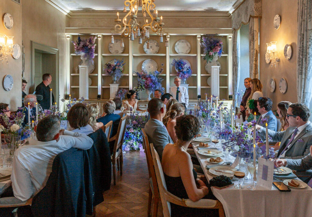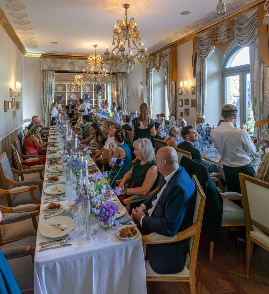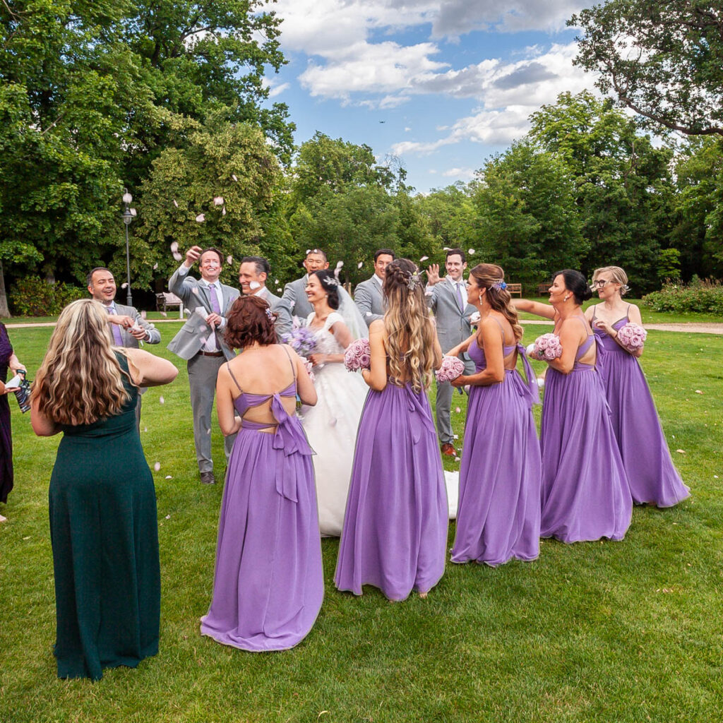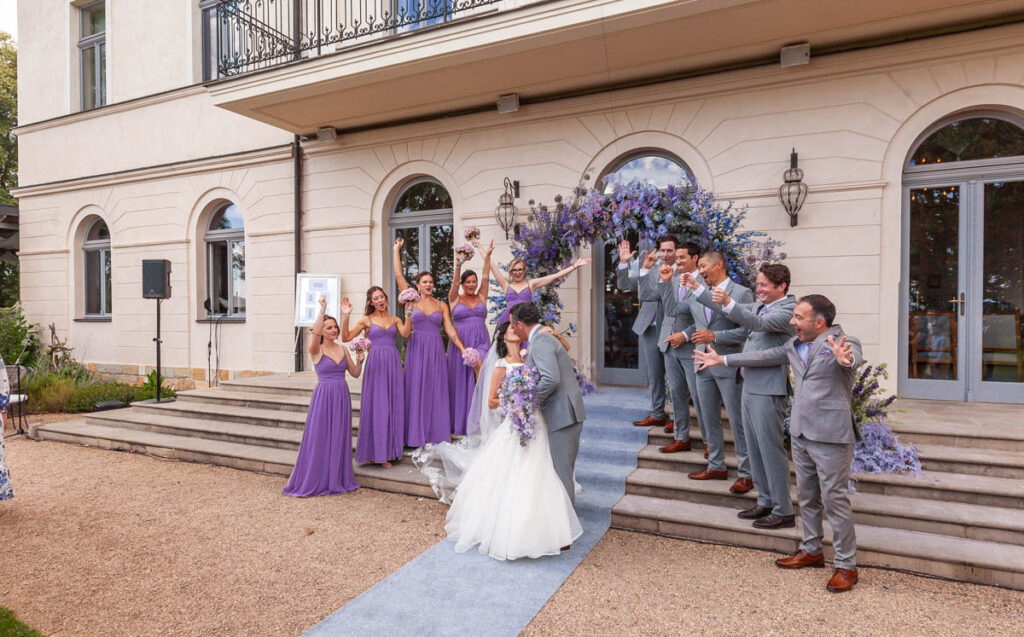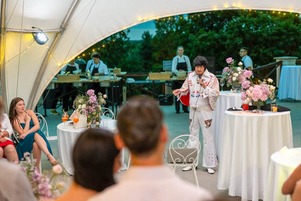 The first night was the rehearsal dinner at nearby Loucen Castle. Unlike Chateau Mcely – which I believe was built in recent times with the intent of being a hospitality destination – Loucen Castle dates back to 1223 and was originally a medieval fortress. The original fortress suffered significant damage during the brutal Thirty Years’ War in the seventeenth century with the current baroque castle built between 1703 and 1714. I left my camera back at the chateau during the rehearsal so no pics, but it was quite the evening: we were greeted by a crew of performers in medieval garb who acted out various parts of the castle history, culminating with a fencing competition in which Lilia and Max very much enjoyed being the finalists. Lilia was the victor, pumped to defeat her chivalrous brother as he competed balancing on one leg. Very fun. The food at the rehearsal dinner was absolutely phenomenal, some of the most scrumptious dishes I’ve ever had the pleasure of consuming. Vojta and his team created such an incredible array of dishes, very memorable.
