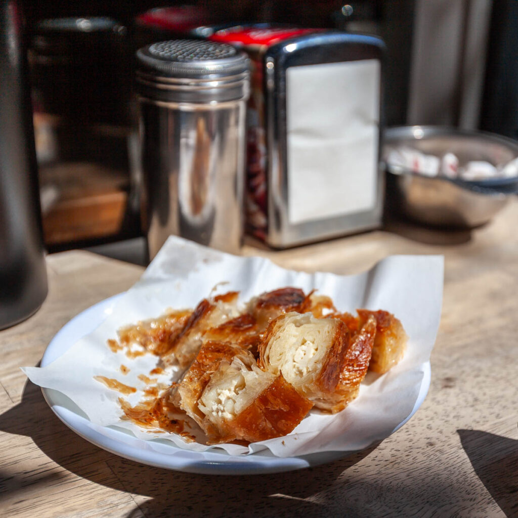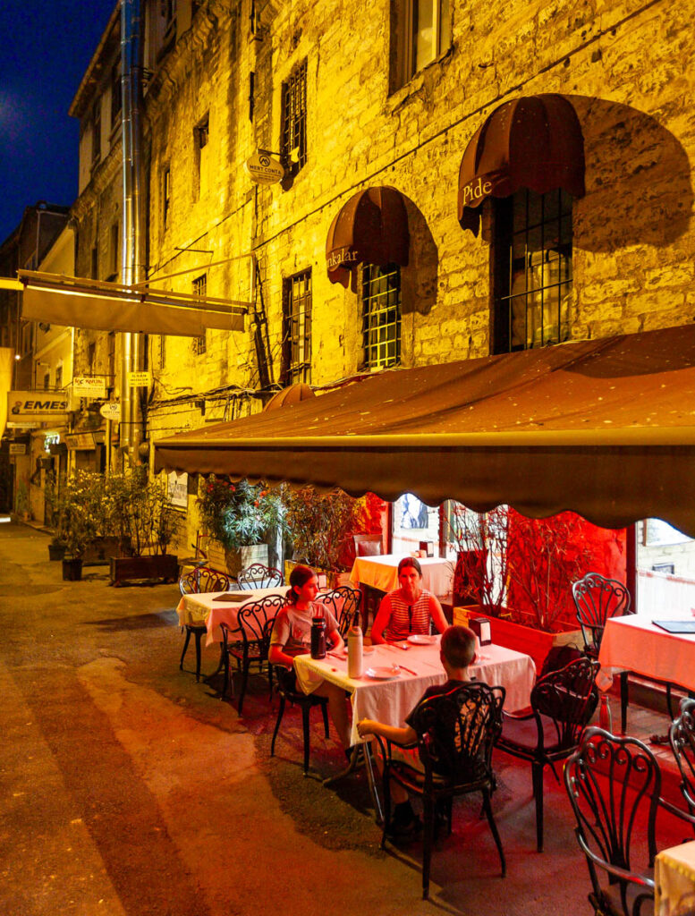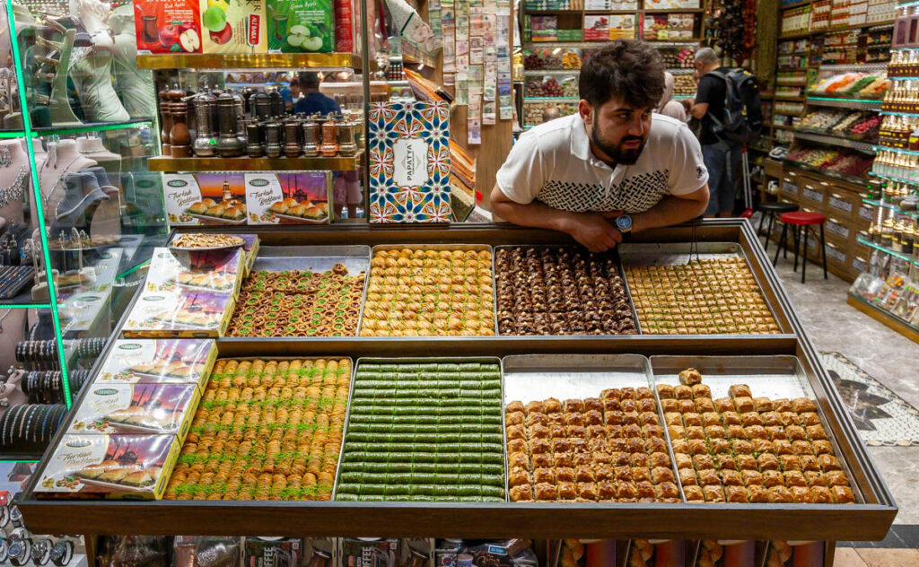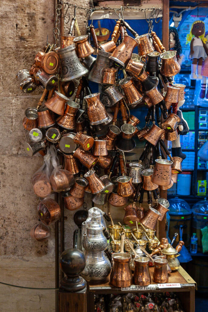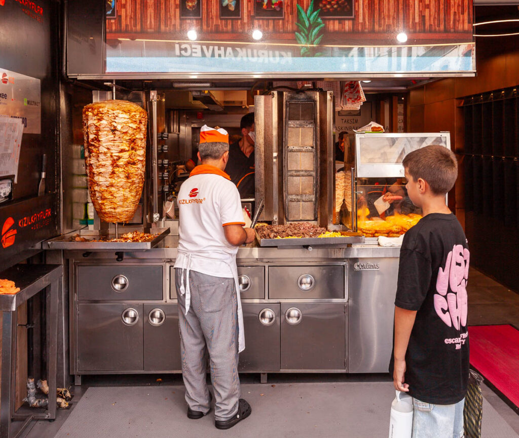 The eclectic mix of food on offer in Istanbul was great. The street eats were excellent and focused mainly on pide – a pizza-like flatbread – and an array of spit-roasted meat vendors. And we can’t forget the boreks, which the kids ate by the bucket load for breakfast and afternoon snacks. We also made sure to have our fill of Turkish coffee, something I discovered on my first visit to Istanbul when I mistakenly drank the “mud” at the bottom of the cup (rookie mistake…) and had quite the unsettled stomach for the rest of the day! Max had done some research on food in Turkey prior to our visit and was laser focused on locating a Turkish ice cream vendor to experience the tricks he’d watched on YouTube firsthand. It wasn’t hard to find one and indeed they were quite impressive with the gooey Turkish ice cream, I think the kids treated themselves to a serving every day we were in the city.