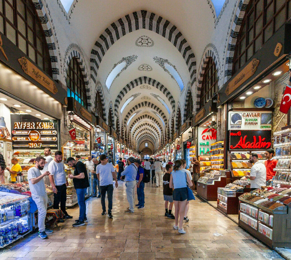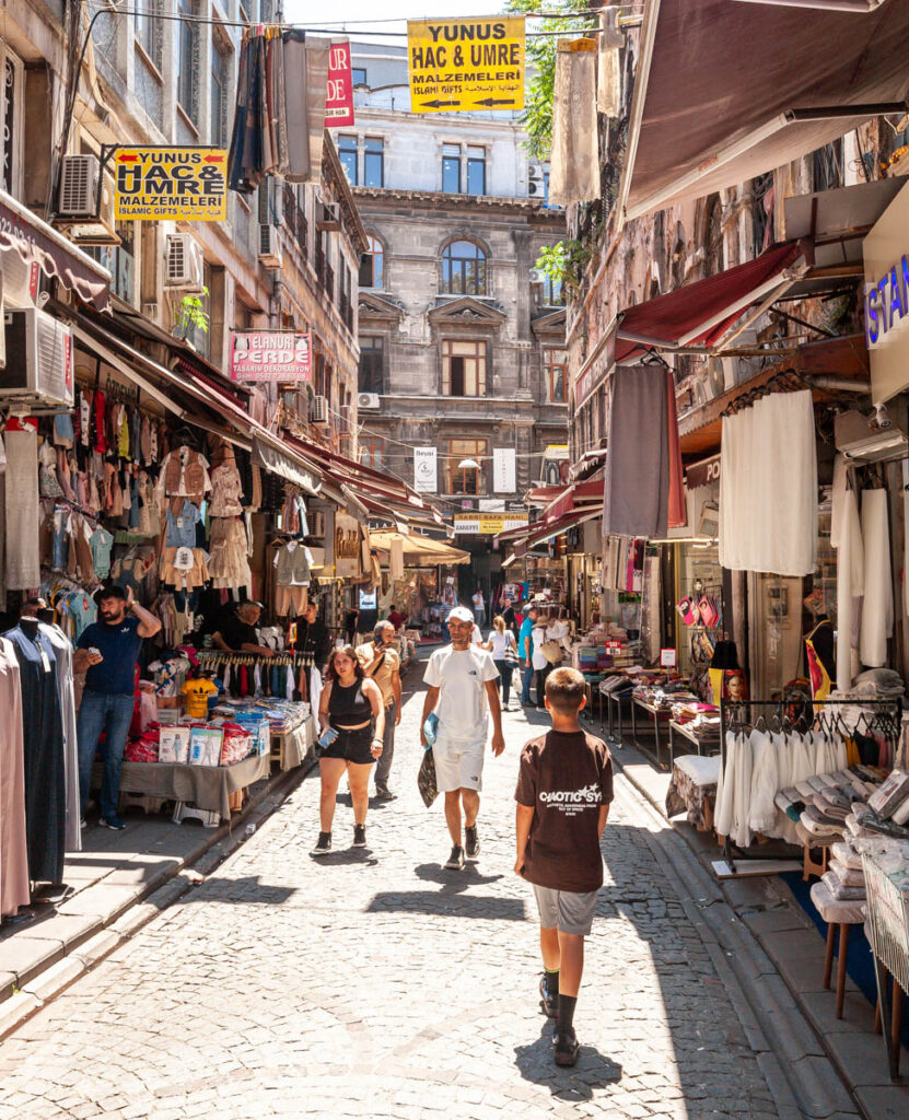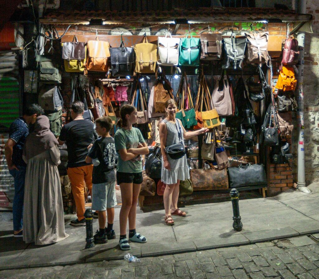 Istanbul is such a crossroads of the world: Turkey is one of the few countries on the planet with its main territory straddling two continents (there are five other countries that do so…). The calls to prayer ringing out across the city from hundreds of mosques five times a day were a stark reminder that we weren’t in Eastern Europe any longer, as were the hijabs everywhere we looked… Lisa and I loved our time in the city when we visited with Sally and ET in 2009 and we thought the kids would enjoy all the bazaars as well as the incredibly eclectic mix of food on offer. The “Islamificaiton” of Istanbul since our visit in 2009 was pretty incredible. When we visited 16 years ago there were only a handful of local women cloaked in head-to-toe hijabs and alcohol was readily available at most eateries. On this visit we actually had to hunt around for an Efes in the hot and humid weather, and I’d guesstimate more than three quarters of the local women wore hijabs, many with only their eyes visible through their veil. That said, we still felt very safe during our entire time in the country and thoroughly enjoyed opening the kids’ eyes to another part of the world.