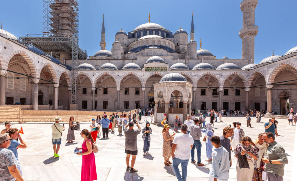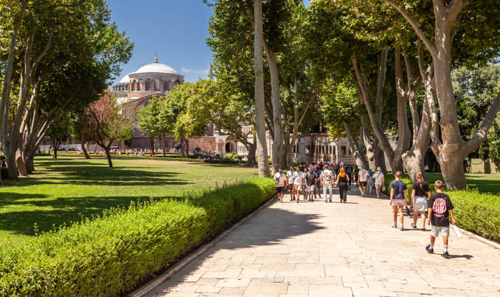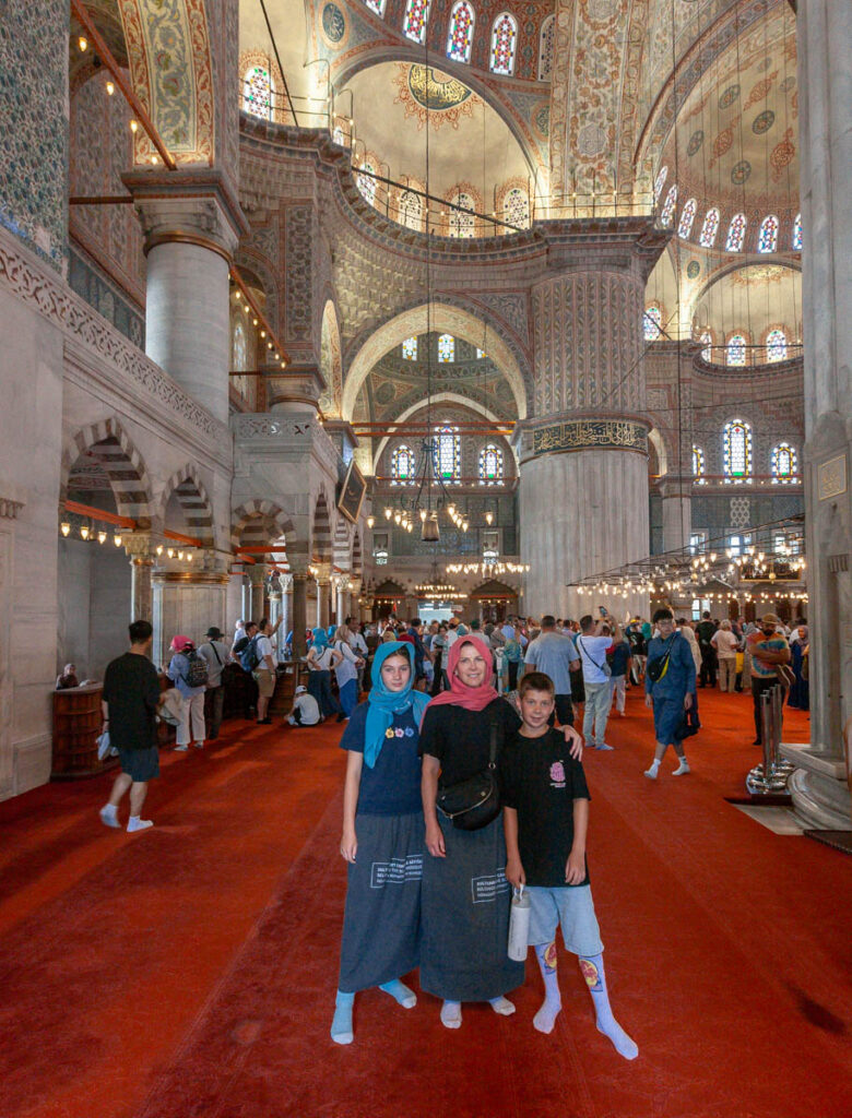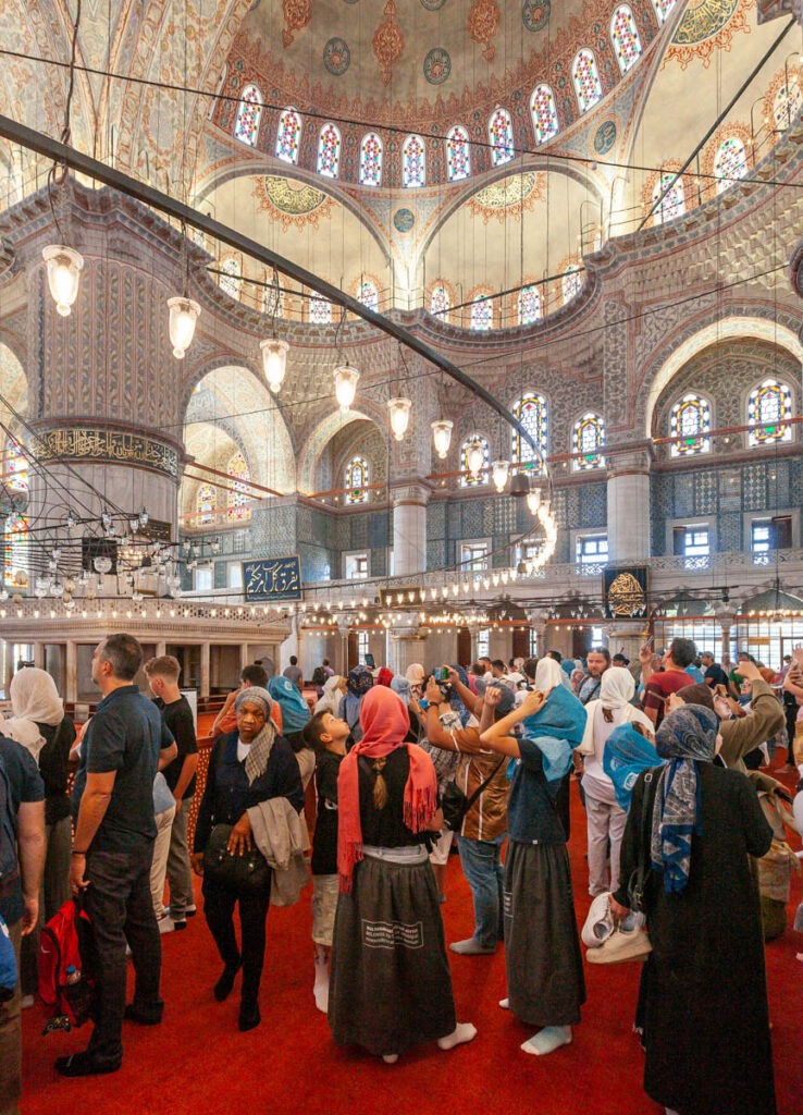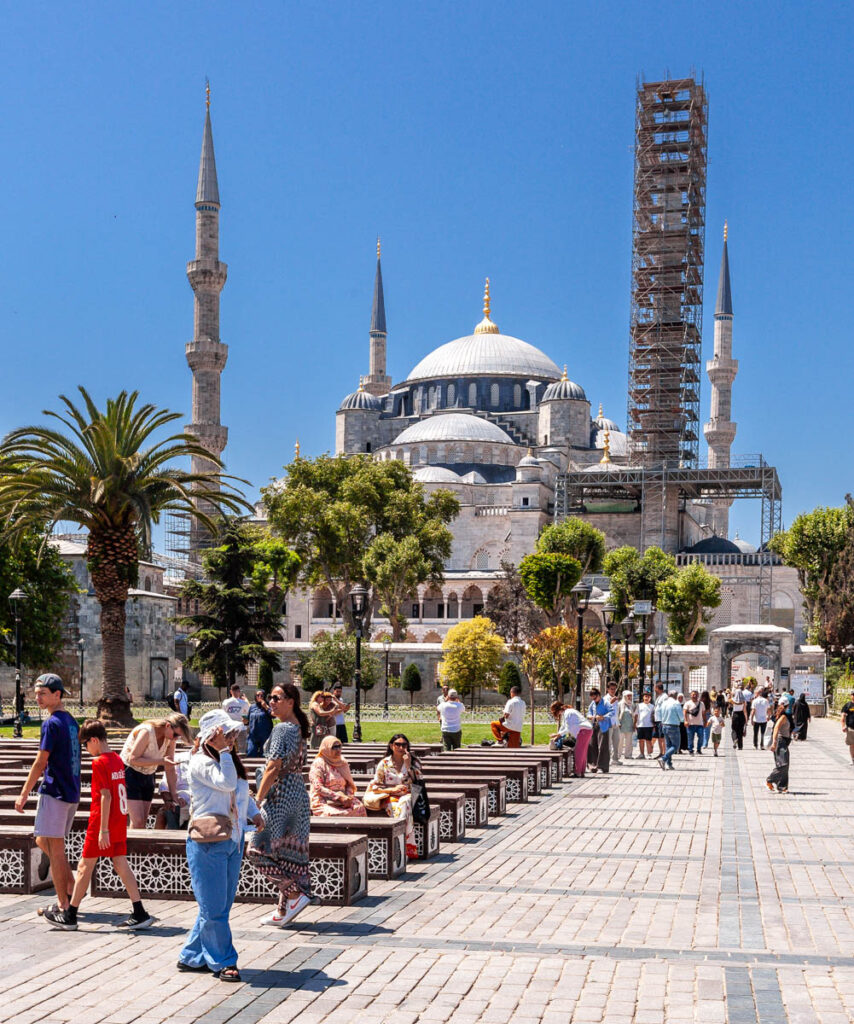 A visit to Istanbul wouldn’t be complete without touring the city’s main religious sites of the Blue Mosque and Hagia Sophia. Quite the memorable experience lining up to enter the mosque: the girls were required to cover their heads with shawls and their legs with mosque-provided skirts out of respect. The Blue Mosque (and a number of the other mosques in central Sultanahmet) were incredible to take in, their towering domes and skyward-reaching spires dominating the skyline. Neighboring the Blue Mosque, Hagia Sophia was built by the Eastern Roman Empire almost 1000 years ago but we didn’t venture inside this trip: when we visited in 2009 it was still recognized as a Christian museum and was free to enter, but with the continued Islamic tilt of Turkish culture was redesignated as a mosque in 2020 and is now closed to the public (there was a museum in part of the structure but it was $120 for the four of us to enter to so we took a pass…).