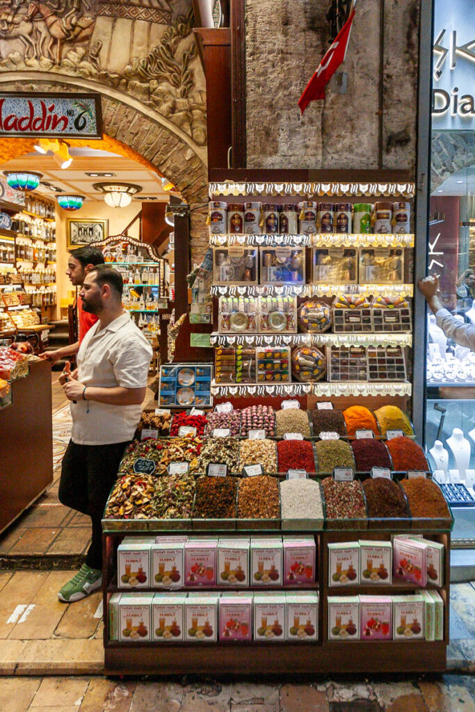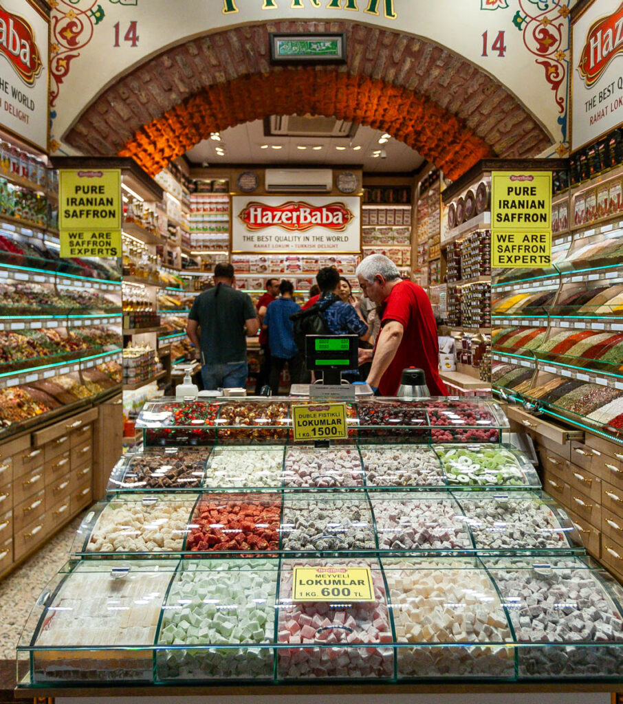 One of the main draws of Istanbul is its bazaars, particularly the Egyptian (or Spice) Bazaar next to the Eminonu ferry port and the Grand Bazaar a little further up the hill. We spent almost an entire day exploring the two bazaars and the endless streets of market vendors in the adjoining alleyways. Pretty much anything one could imagine was offered for sale: food, spices, electronics, fashion, artwork, leather goods… You name it. The Grand Bazaar in particular had become quite a bit more swanky since we visited 16 years ago, with prices relfecting the structural improvements: most of the knickknacks we purchased were actually from the street vendors outside the main bazaars, but they were a lot of fun to tour nonetheless. The Grand Bazaar sprawls over a whopping eight acres and we found ourselves getting turned around in its curvy alleyways more than once (yes, we even temporarily lost a kid or two for short periods as everyone let their focus drift to different stores as we strolled!).