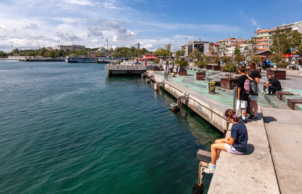 We figured if we’re going to visit a country that spans two continents we might as well actually set foot on those two continents. So on our last afternoon in Istanbul we caught the ferry over the Bosphorus (at a whopping cost of US$1 each!) from Eminonu to Kadikoy, in doing so setting foot in both Europe and Asia. It was a great way to see the city from the water and also an excellent way to get some fresh air away from the heat and humidity of the Istanbul concrete. Kadikoy was decidedly less touristy – although no less bustling – than neighboring Sultanahmet and Karakoy on the European side. We enjoyed an hour-or-two strolling along alleyways lined with restaurants and food vendors, enjoying a beer to people watch while the kids each devoured another mountain of borek.