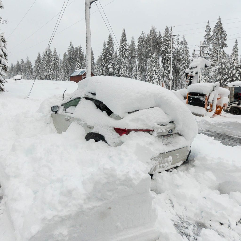 I did want to put a couple of pics of the poor Subaru when I went to dig it out after skiing today, just for my own personal reference. I’ve dug a lot of vehicles out after big Sierra storms over the years, but never have I had one as buried as this!