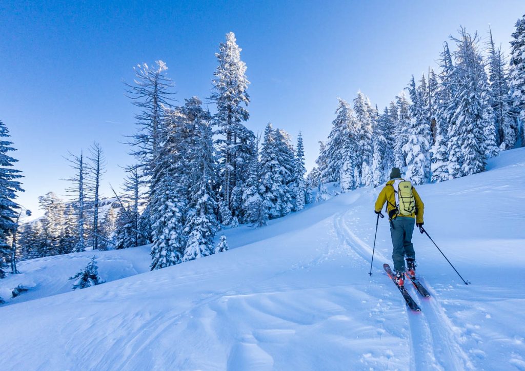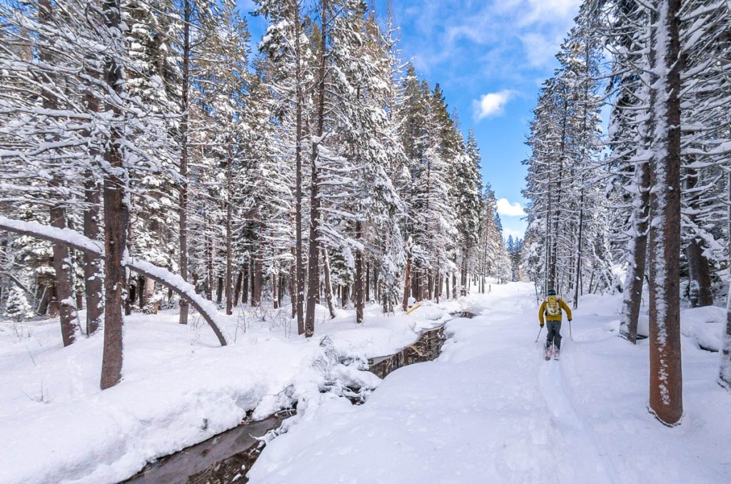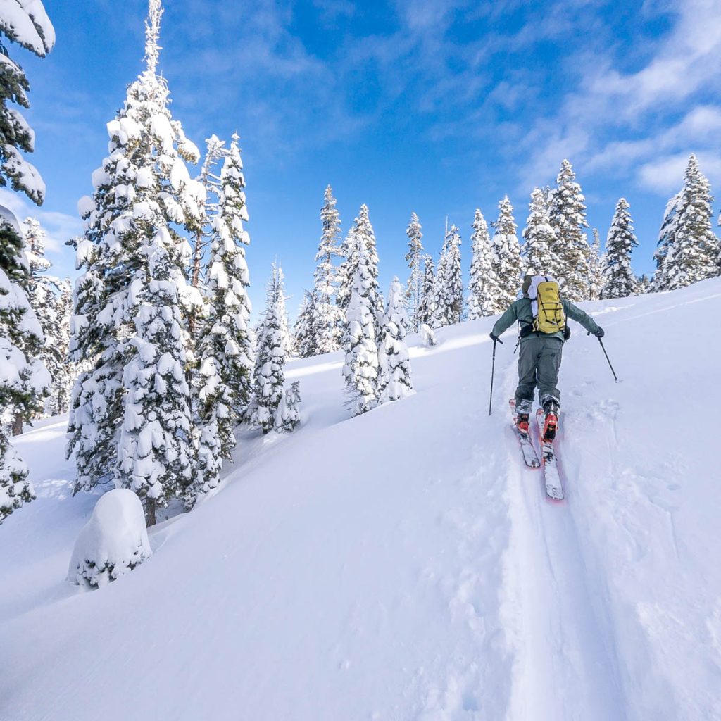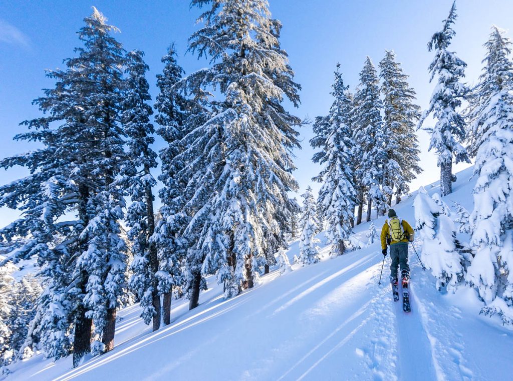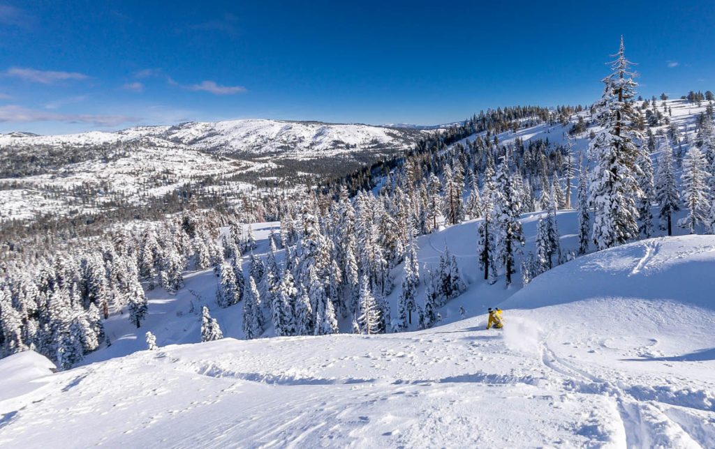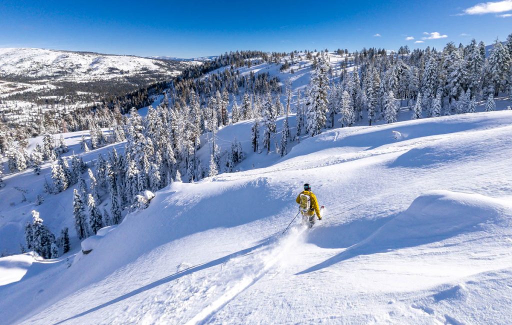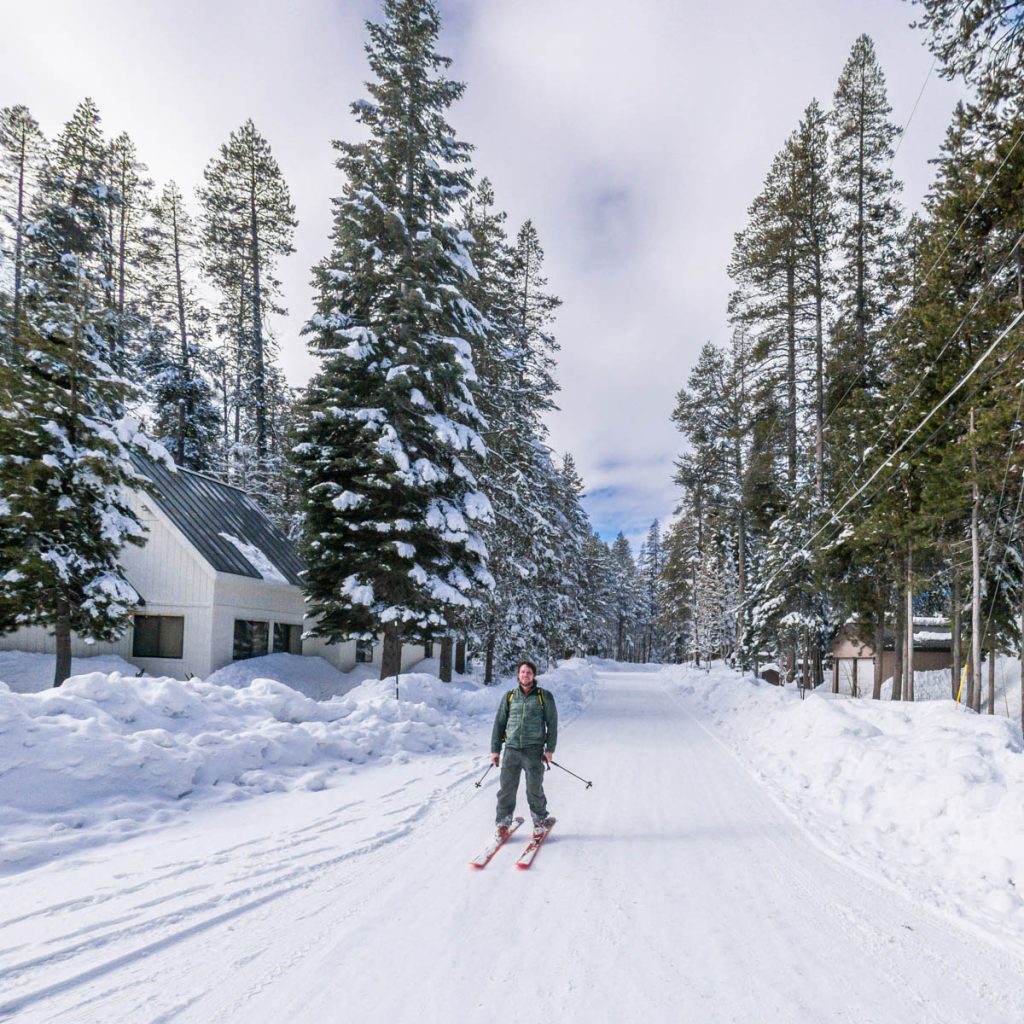 With all that fresh snow on the Sierras, Paris and I took advantage of a bit of a break in the weather to punch in our first lake run of the season: over 2000 vertical feet of untracked pow from Donner Peak to the west end of Donner Lake. It was a magic morning as we climbed along the edge of Sugar Bowl’s boundary shortly after dropping Wild Man off to school for day two of his winter quarter, scattered clouds and views for miles as we climbed up the back of Donner Peak.