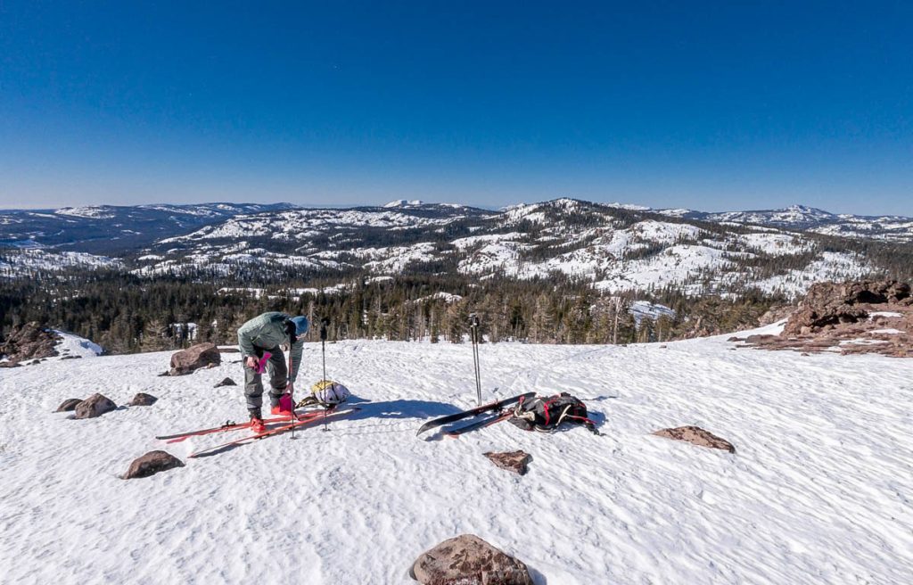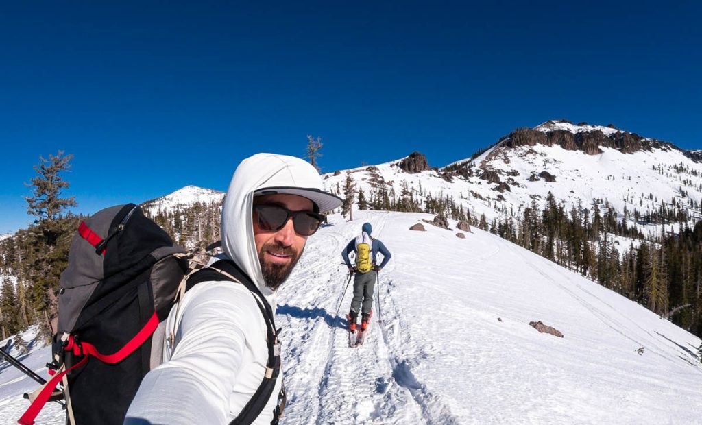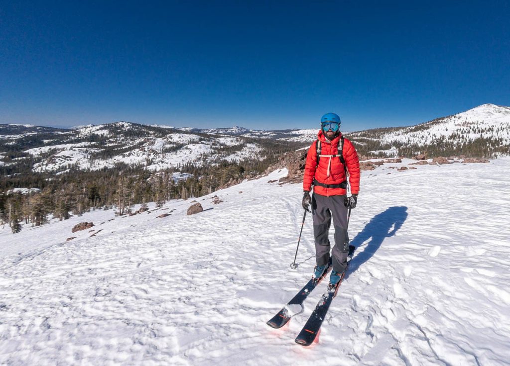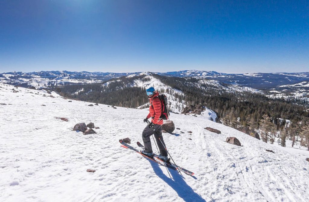 A quick jaunt up Castle Peak with Paris this morning to finish the work week. Was beautiful up there, but the wind was incredibly bad over the upper ridges – I had to close one of my eyes for a little while because the wind was making it water so bad – and the warm temps certainly hasn’t done the snow quality any favors. Definitely no untracked pow left like we had on Tuesday at Rubicon Peak. Great to get outside for a bit, nonetheless!