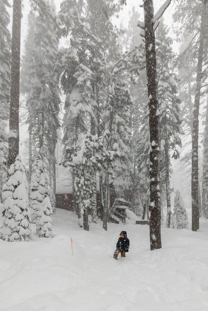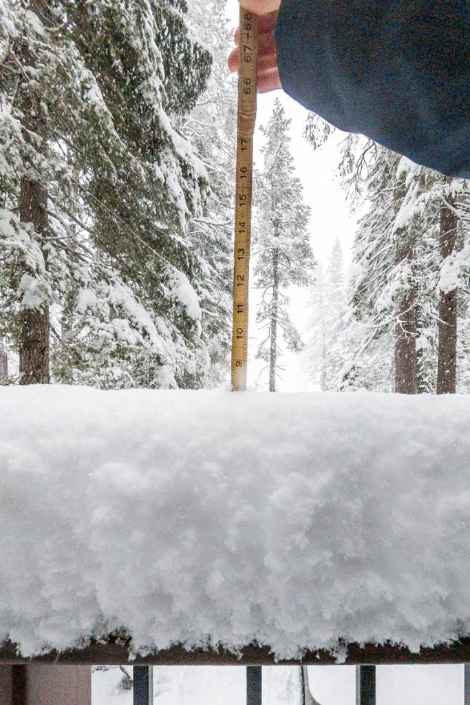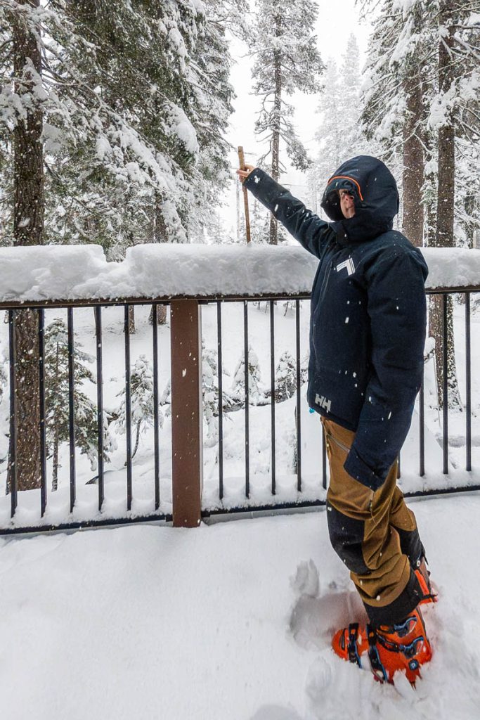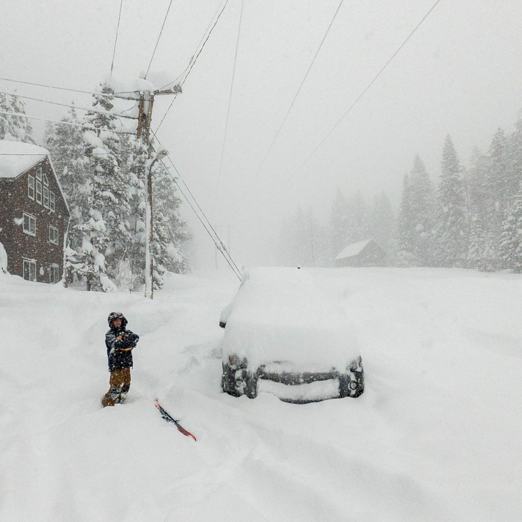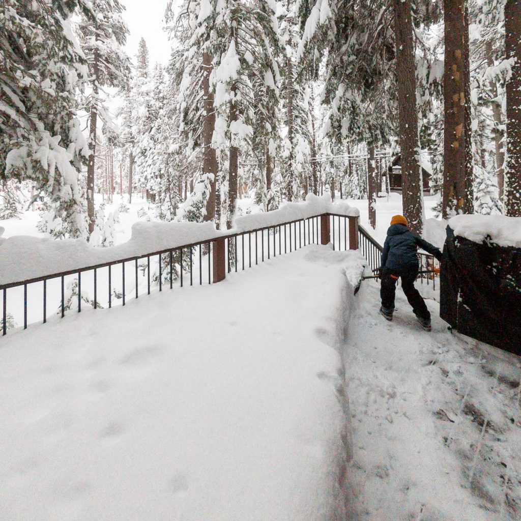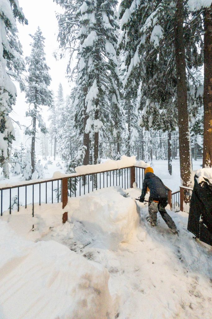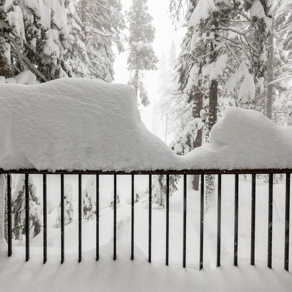 The forecast had consistently been calling for an intense storm to hit us on President’s Day long weekend. Originally it was slated to start on Friday night right after the girls arrived from Sonoma. Then it pushed back to Saturday… Then Sunday… The forecast from Sunday on Open Snow is snapped to the right. Yep, that’s almost nine feet of snow in the span of two weeks. The last big dump we received up here on Donner Summit was in early January so when we went to bed on Sunday night with starry skies and no wind Max didn’t believe what was due to hit overnight. Monday morning I was making my tea and heard him coming down the stairs, followed by a whispered, “Holy shit!” as he looked out the window. Roughly eight inches of fresh snow coated the deck and banister, with big Sierra flakes continuing to cascade out of the sky. Go time.