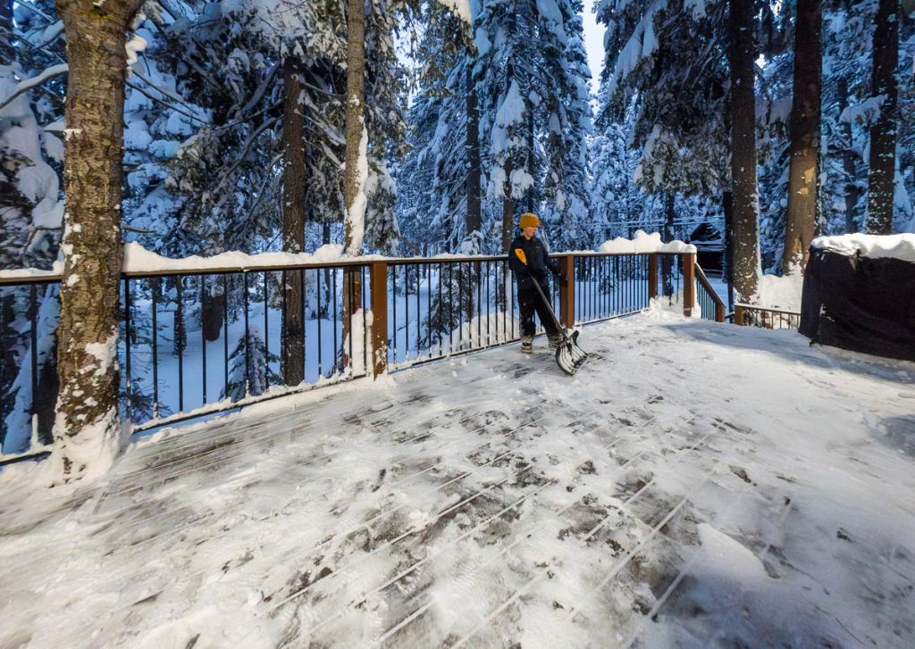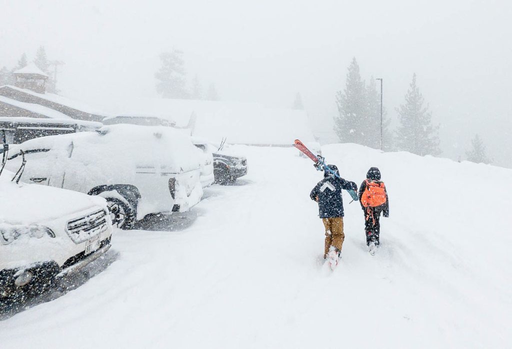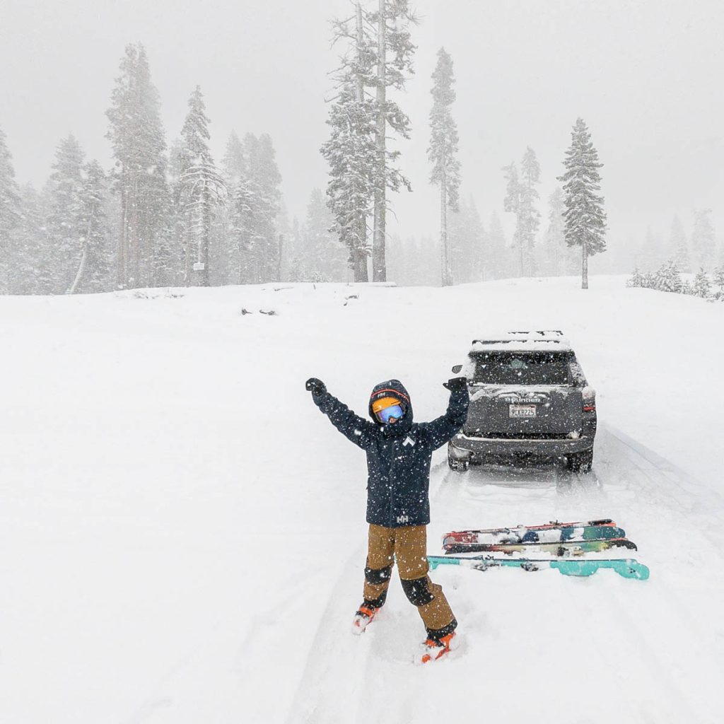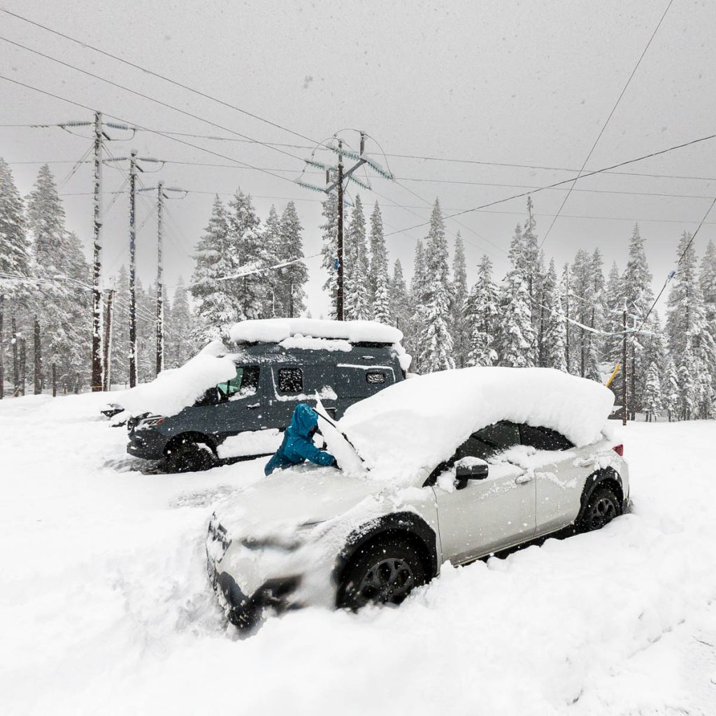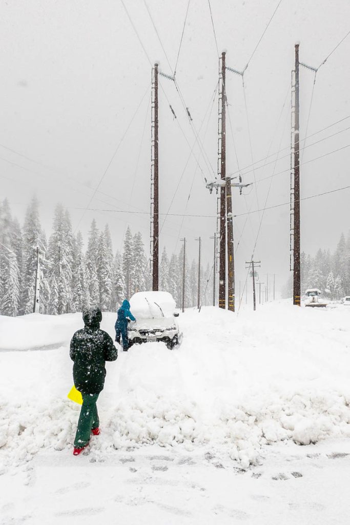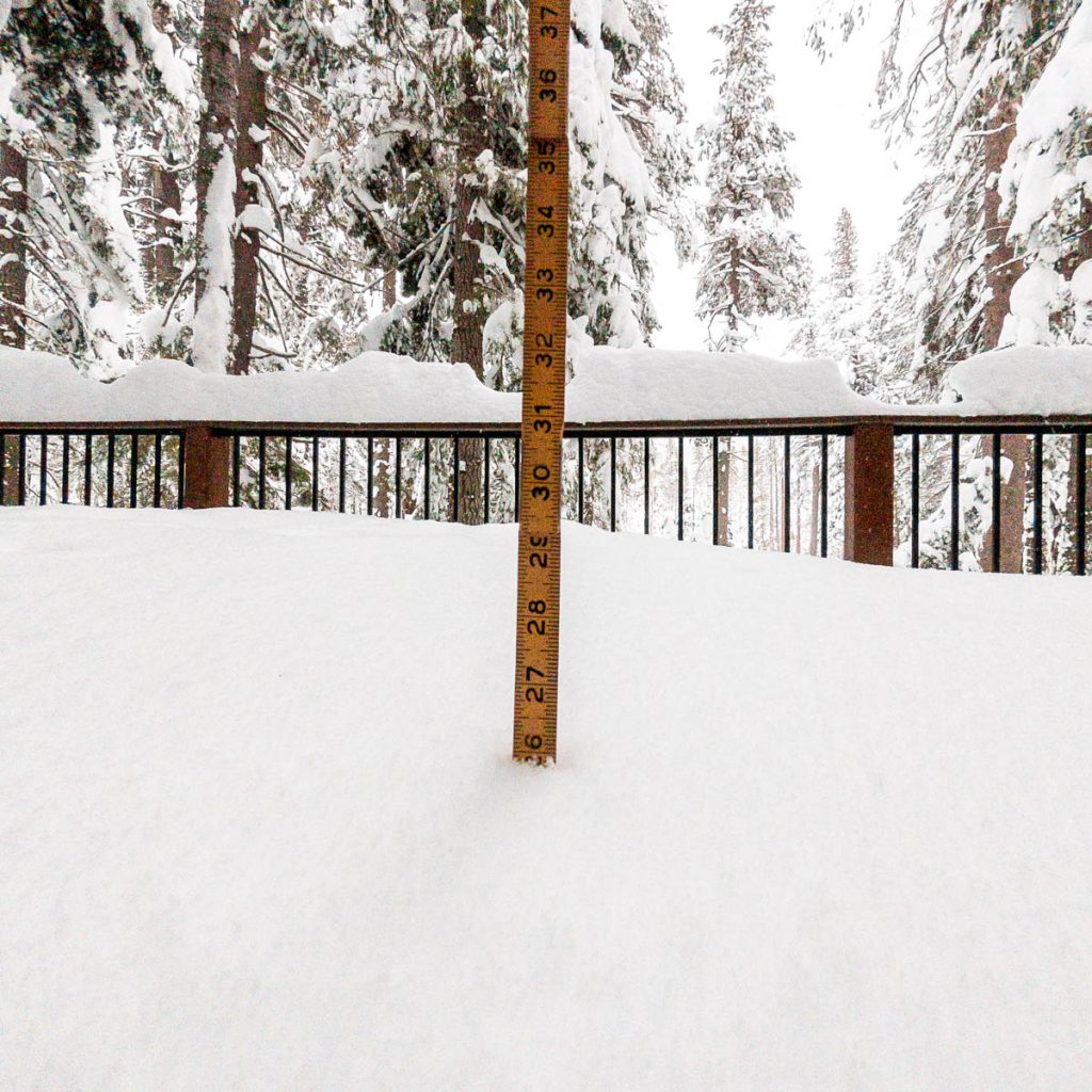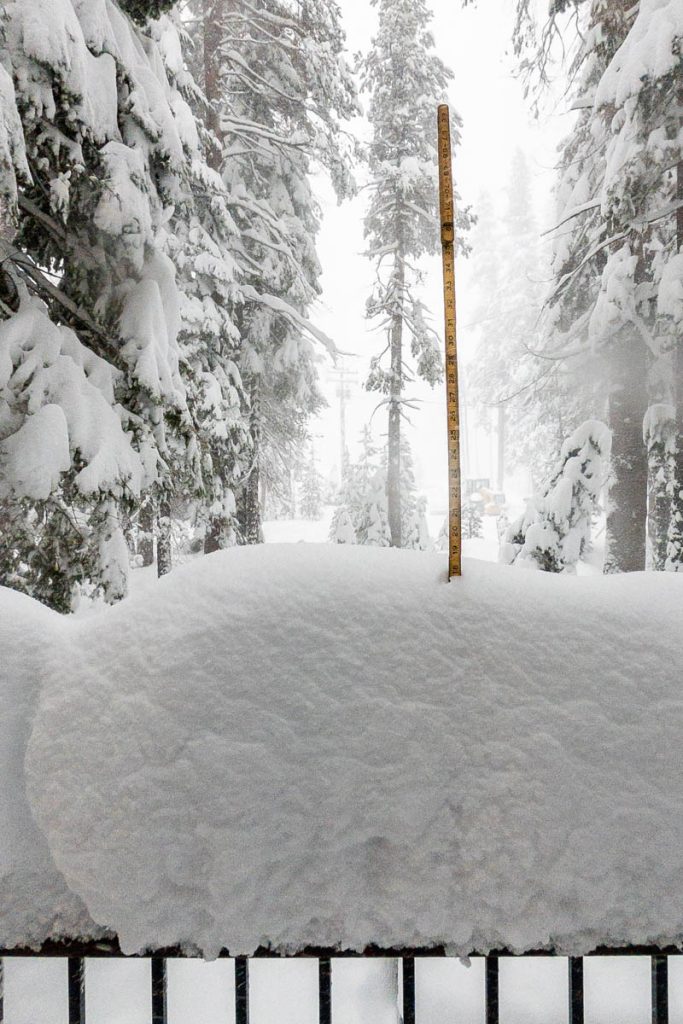 The forecast had consistently been calling for an intense storm to hit us on President’s Day long weekend. Originally it was slated to start on Friday night right after the girls arrived from Sonoma. Then it pushed back to Saturday… Then Sunday… The forecast from Sunday on Open Snow is snapped to the right. Yep, that’s almost nine feet of snow in the span of two weeks. The last big dump we received up here on Donner Summit was in early January so when we went to bed on Sunday night with starry skies and no wind Max didn’t believe what was due to hit overnight. Monday morning I was making my tea and heard him coming down the stairs, followed by a whispered, “Holy shit!” as he looked out the window. Roughly eight inches of fresh snow coated the deck and banister, with big Sierra flakes continuing to cascade out of the sky. Go time.