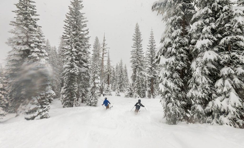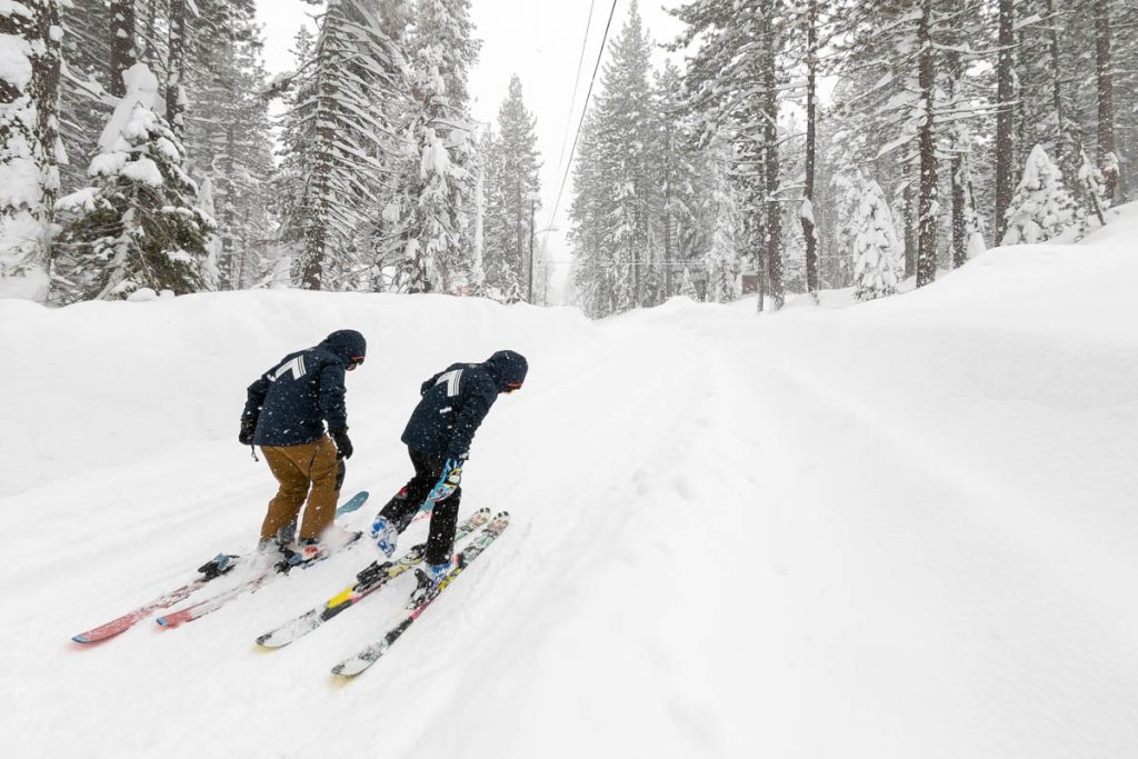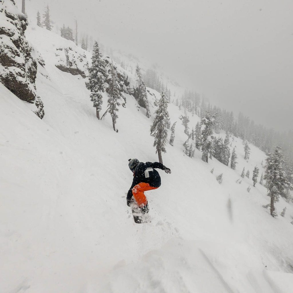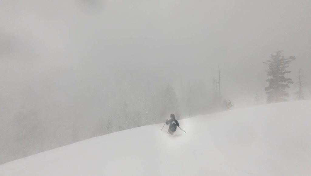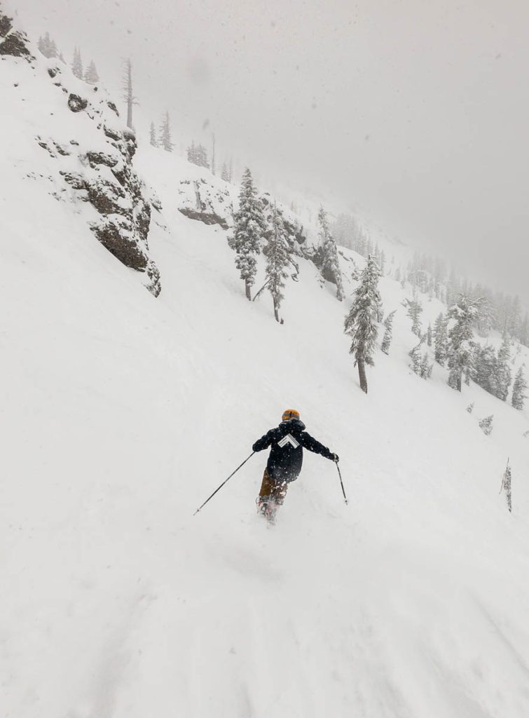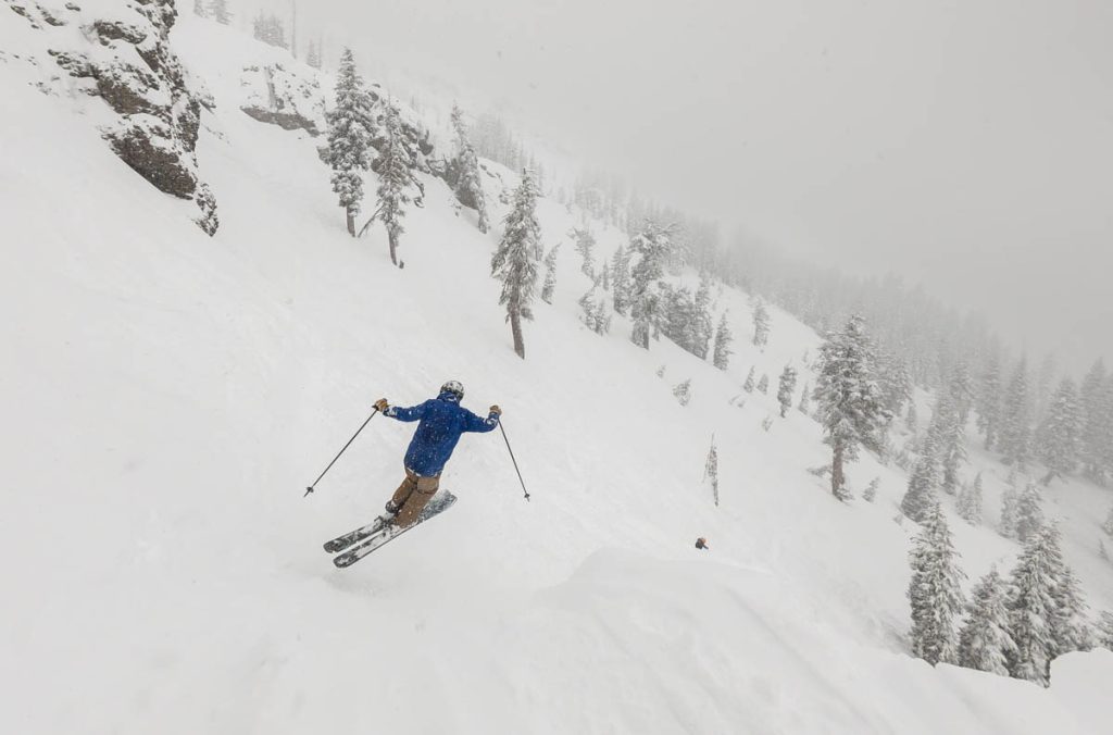The resort was almost empty except for the handful of diehards who live up on the summit and some residents of village, but it was well worth the white-knuckle drive up Donner Pass Road once we arrived: bottomless pow everywhere we looked. Even thought the bulk of the resort was open most of it was unskiable, it was just too deep, especially for someone as light as Max. I was even struggling to keep my momentum on anything but the steepest of pitches and found myself wishing I had a set of Paris’ Blizzard Spurs underfoot with their almost snowboard-like 127 millimeter waist. I stuck close to Wild Man, it was up to his waist in sections and I was a little wary of him disappearing down a tree well. We managed to get some great turns in before the resort fully shut down around noon, likely influenced by the news of a tragic backcountry avalanche a few miles away below Castle Peak.