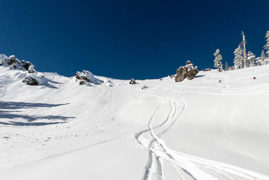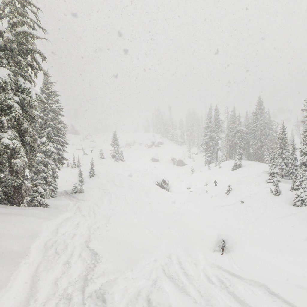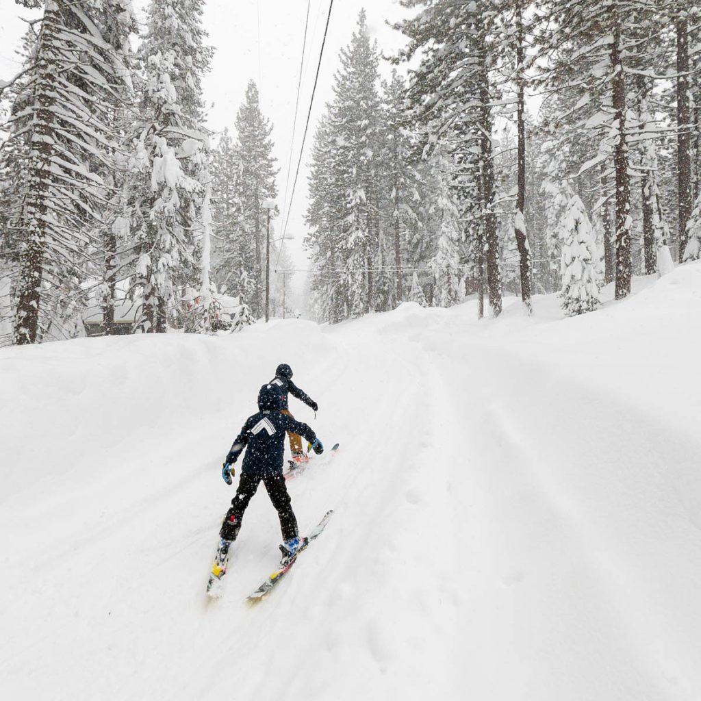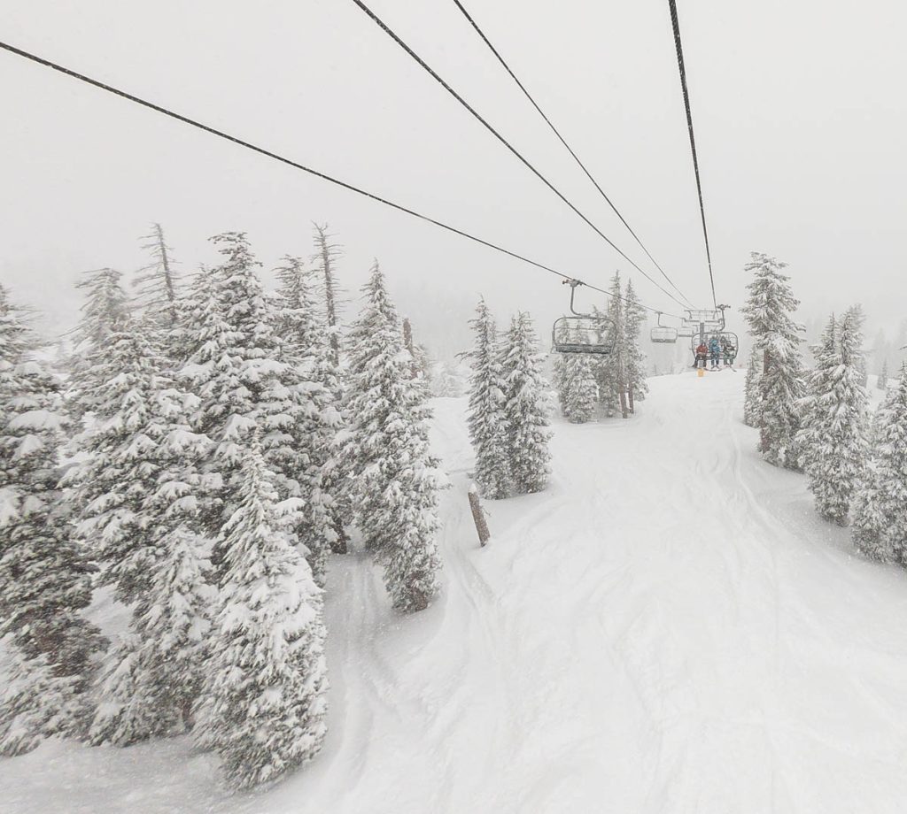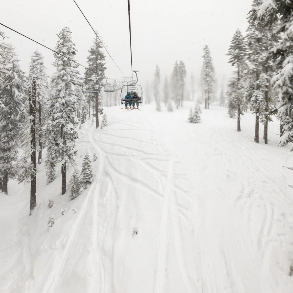 The resort was almost empty except for the handful of diehards who live up on the summit and some residents of village, but it was well worth the white-knuckle drive up Donner Pass Road once we arrived: bottomless pow everywhere we looked. Even thought the bulk of the resort was open most of it was unskiable, it was just too deep, especially for someone as light as Max. I was even struggling to keep my momentum on anything but the steepest of pitches and found myself wishing I had a set of Paris’ Blizzard Spurs underfoot with their almost snowboard-like 127 millimeter waist. I stuck close to Wild Man, it was up to his waist in sections and I was a little wary of him disappearing down a tree well. We managed to get some great turns in before the resort fully shut down around noon, likely influenced by the news of a tragic backcountry avalanche a few miles away below Castle Peak.