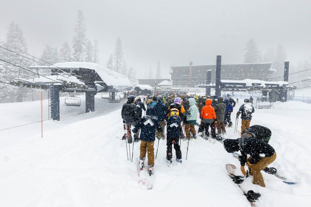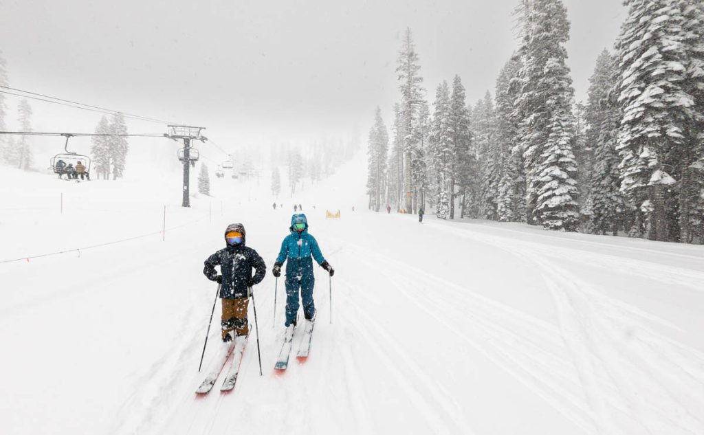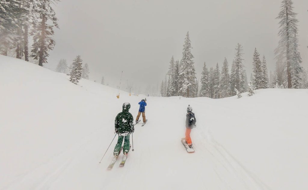 We woke up to blue skies and 27 inches/69 centimeters of fresh powder this morning. 10°F/-12°C at Powder Haus. What a storm… The ride to training was a mess, with every man and his dog from San Francisco to Reno making the trip to the mountains for what ended up being 111 inches/9.25 feet/2.8 meters of snow over the span of four days. Incredible. The lift lines were long for Sugar Bowl – although quite mellow in Squaw and Northstar terms – but it was well worth it. For my first run this morning, God blessed me by having patrol drop the rope into Nancy’s Couloir as I was getting off the top of Disney chair for an run of waist deep untracked cold smoke down the 45° slopes with nothing but blue skies across the horizon. Another one from this week that I’ll remember for a long time, felt like flying. The Sugar Bowl Academy kids were doing themselves proud: it was great to watch them backflipping and spinning of every cliff, drop and roll in sight underneath the chairs every time I rode up. Max came home so full of stoke at sticking two 360 spins off the wind lip into the pow at the bottom of Avalanche during the day (hist first rotations in the air since he hyperextended his knee in the park a few weeks back…).