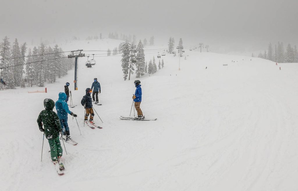 President’s Day was one of the few days of the season when Max didn’t have school or training, so it was great for him to be able to ski with the family as well as the Cullertons. Finn is a grade below Max at Sugar Bowl Academy but the two of them share a lot of classrooms given the small size of the school. They’ve become tight buddies over the past couple of months. Finn snowboards and Max is on the freeride squad so the two of them never get to train together, Monday was a great opportunity for them to hit the steeps on their day off. Tons of fun having a squad of eight hitting the pow and watching the five kids feed off each other, hitting every drop and chute they could find and frothing with excitement at the end of each run. The pow wasn’t bottomless but it made for excellent conditions, and we were all thanking ski patrol for getting the steeps open shortly after the chairs started spinning.