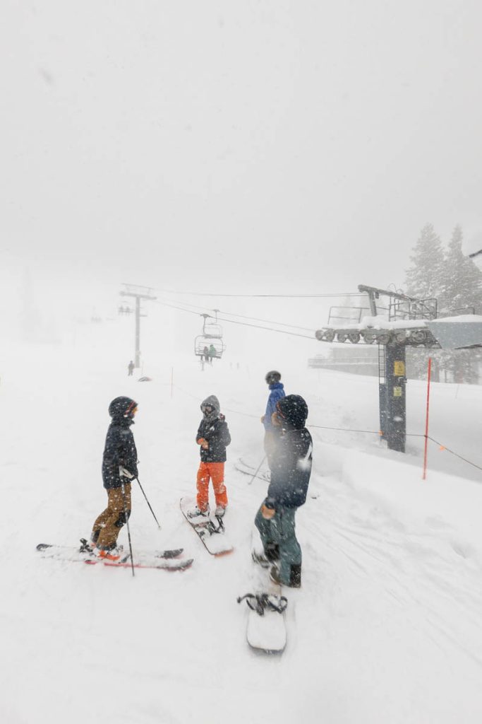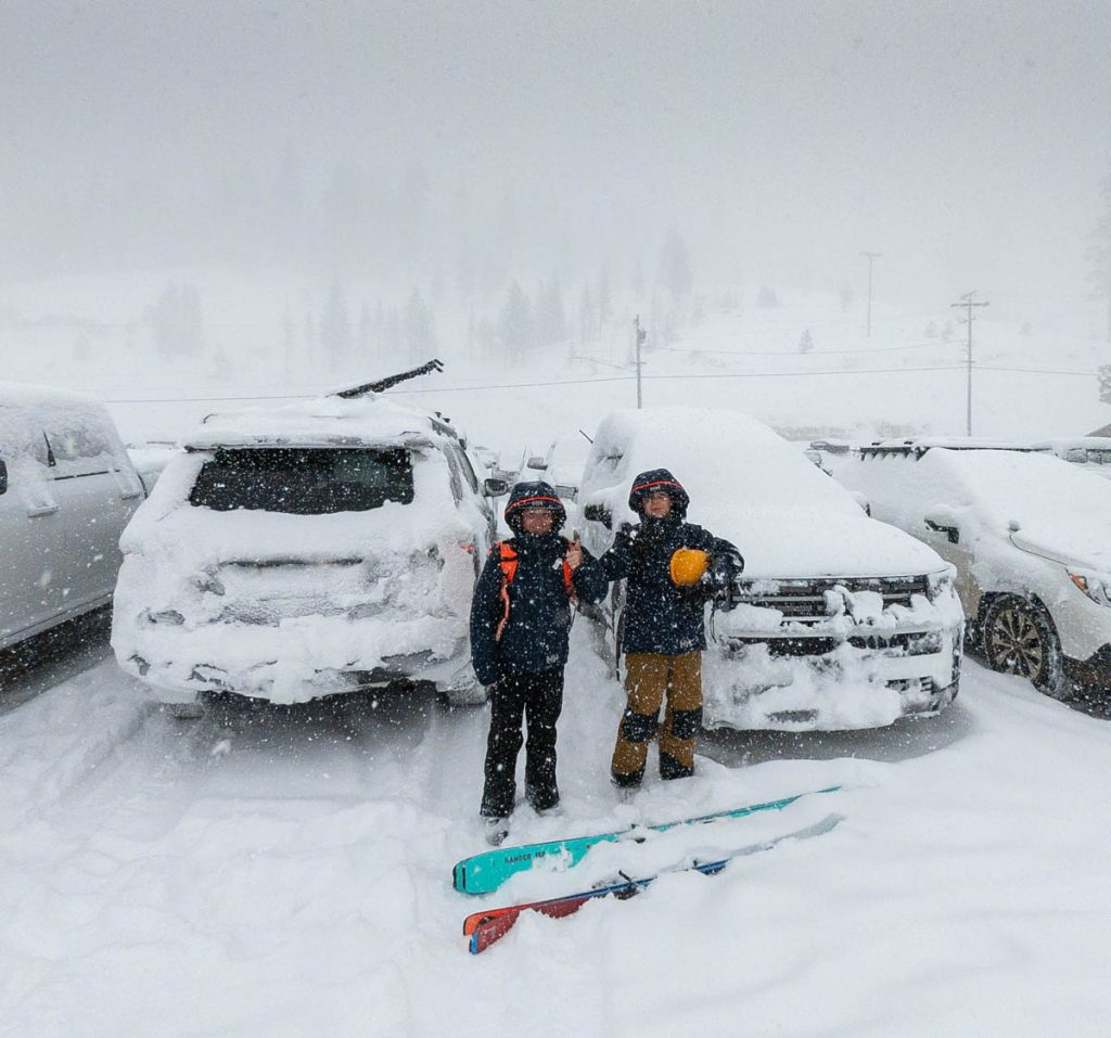 The girls were originally slated to head home on Tuesday, but the snow continued to pummel the mountains on Monday afternoon and in hindsight made the right call to head back down the mountains to Lilia’s sheep after dinner on Monday night: the freeway closed early Tuesday morning and stayed closed until Wednesday night. Max and I were up early on Tuesday to dig our way to the 4Runner when just as we were ready to head to school we received the alert that school and training was canceled for the day. With all roads up to the summit shut down in the blizzard there was no way for staff and coaches to get to the resort. We watched the resort status online from Powder Haus as mountain ops tried to get the things open, eventually making a beeline for the 4Runner when they started opening chairlifts shortly after 9AM.
