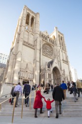 Riding to work last week I saw carols at Grace Cathedral advertised on the side of a bus, so I bought some tickets for Greg, Lisa, Lilia and me to attend the carols service on Saturday. None of us had ever been inside the beautiful cathedral sitting atop Nob Hill, it was magically decorated and packed for the occasion. Lilia only lasted a few songs – definitely wasn’t geared to young children – before I took her out for a walk around the cathedral grounds, but it was a fun experience and definitely made us feel like Christmas was on its way.