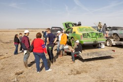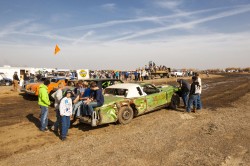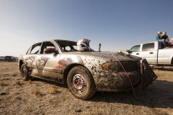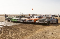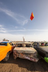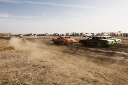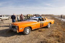 Kevin and I were both excited as the New Year rolled around, a little nervous too, lots of local bragging rights on the line with the annual Skillmaster race. There were close to 30 cars entered this year, five heats with the top two finishers in each heat progressing to the main event. There was also a race called ‘The Hooligan’ held between the heats and the main event: a 10 lap free-for-all, anyone completing the 10 laps received automatic entry into the finals as well. Kevin and I played it safe in our heat, finishing a solid second. We scored pole position for the main event and managed to hold the lead for the first five or six laps. The eventual winner swapped the lead with us for a few laps until we were t-boned and spun out on lap 12 or 13. We were a little dazed by the spin and lost sight of the lead car, not sure if he’d been taken out in the same melee or if he was in front of us. When we eventually realized that we were in second and not first place it was too late to regain the lead and we finished second. A hell of a lot of fun, I’m glad I could make it down to help out Kevin. I think I’ll be back again for this one next year! The video below is a collection of the best bumps and jumps from the racing, there’s also a HD version on Vimeo here.