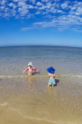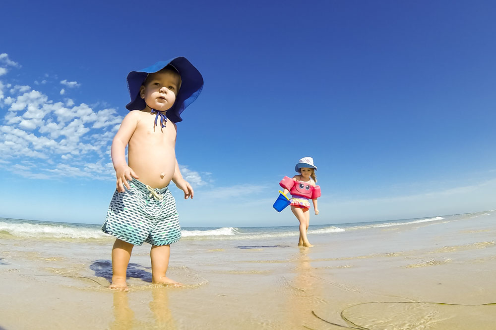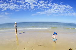We ventured to Adelaide for Christmas this year, the first time we’ve been in Adelaide for the holiday season since 2009. The jet lag rule of thumb – that it takes a day per hour of time change – was spot on for poor little Max: he had a tough few nights at the beginning of the trip, which meant that the rest of the house didn’t sleep too well either, but that didn’t stop us getting down to the beach on some of the warm days early in our stay. It was Max’s first time at the beach, very funny to see his reaction the first time he felt sand under his bare feet and saw the expanse of the ocean at Henley Beach. The photos here are all at the beach in front of the house where I grew up, fun for me to see them frolicking in the water and digging holes in the sand where I spent many a summer’s day as a kid.